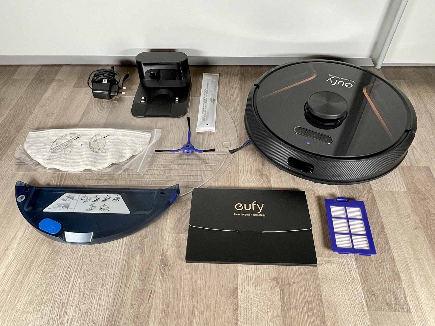 - Der Lieferumfang des Eufy RoboVac X8 Hybrid