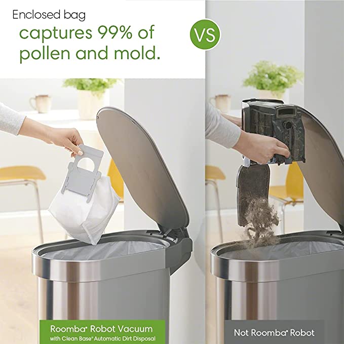 Der iRobot Roomba j7+ hat eine schicke Absaugstation mit im Gepäck, die vollautomatisch den Staubbehälter des Roboters absaugt. In spezielle Staubsaugerbeutel wird der aufgesaugte Schmutz hineintransportiert. Die Staubbeutel fungieren ebenso als Filter, was bis zu 99 Prozent an Schadstoffen zurückhält. Das Entleeren der Absaugstation kann man sich für lange Zeit sparen. Bis zu 60 Tage ohne Staubbeutelwechsel soll die praktische Absaugstation durchhalten.