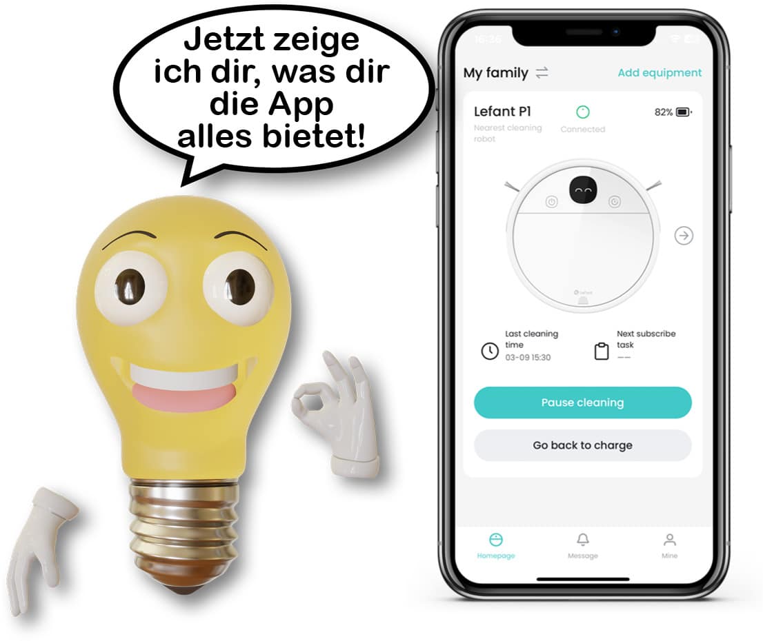 Natürlich besitzt der Lefant P1, neben der manuellen Bedienmöglichkeit, auch eine eigene App-Steuerung. Diese ist zwar absolut nicht umfangreich, enthält aber ein paar recht nützliche Dinge. Die Funktionen zeige ich dir in nachfolgender Tabelle auf. Ach, und erwähnenswert wäre übrigens auch, dass der Lefant P1 mittels Amazon Alexa und Google Assistant verbunden werden kann. So lässt er sich ganz bequem über die Sprache starten oder zur Ladestation zurückschicken. Hat im Test ebenfalls einwandfrei funktioniert.
