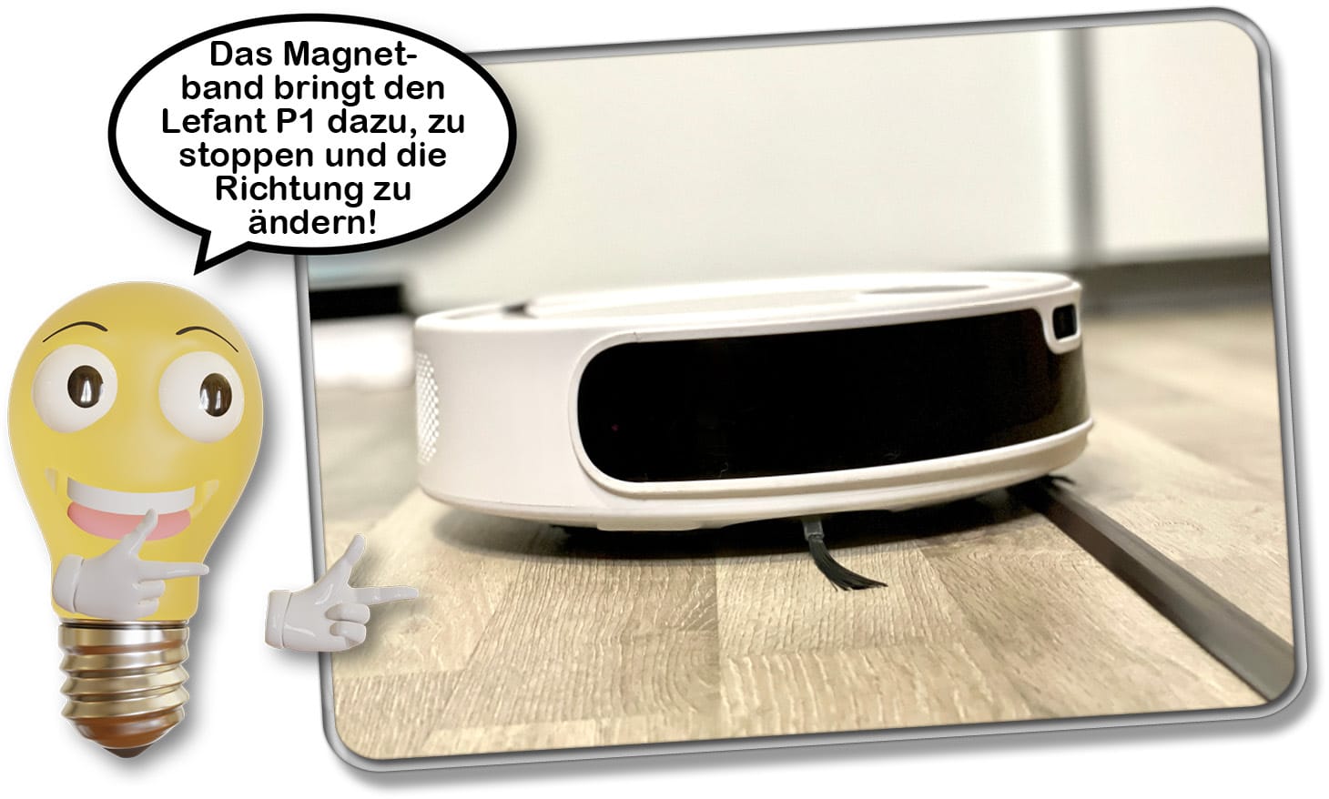 Sollte es einen Bereich geben, der vom Lefant P1 gemieden werden soll, dann liegt dir das im Lieferumfang enthaltene Magnet-Absperrband bereit. Dieses überfährt der Saugroboter nicht und so kannst du wertvolle Vasen oder für den Saugroboter unangenehme Bereiche einfach ausgrenzen.