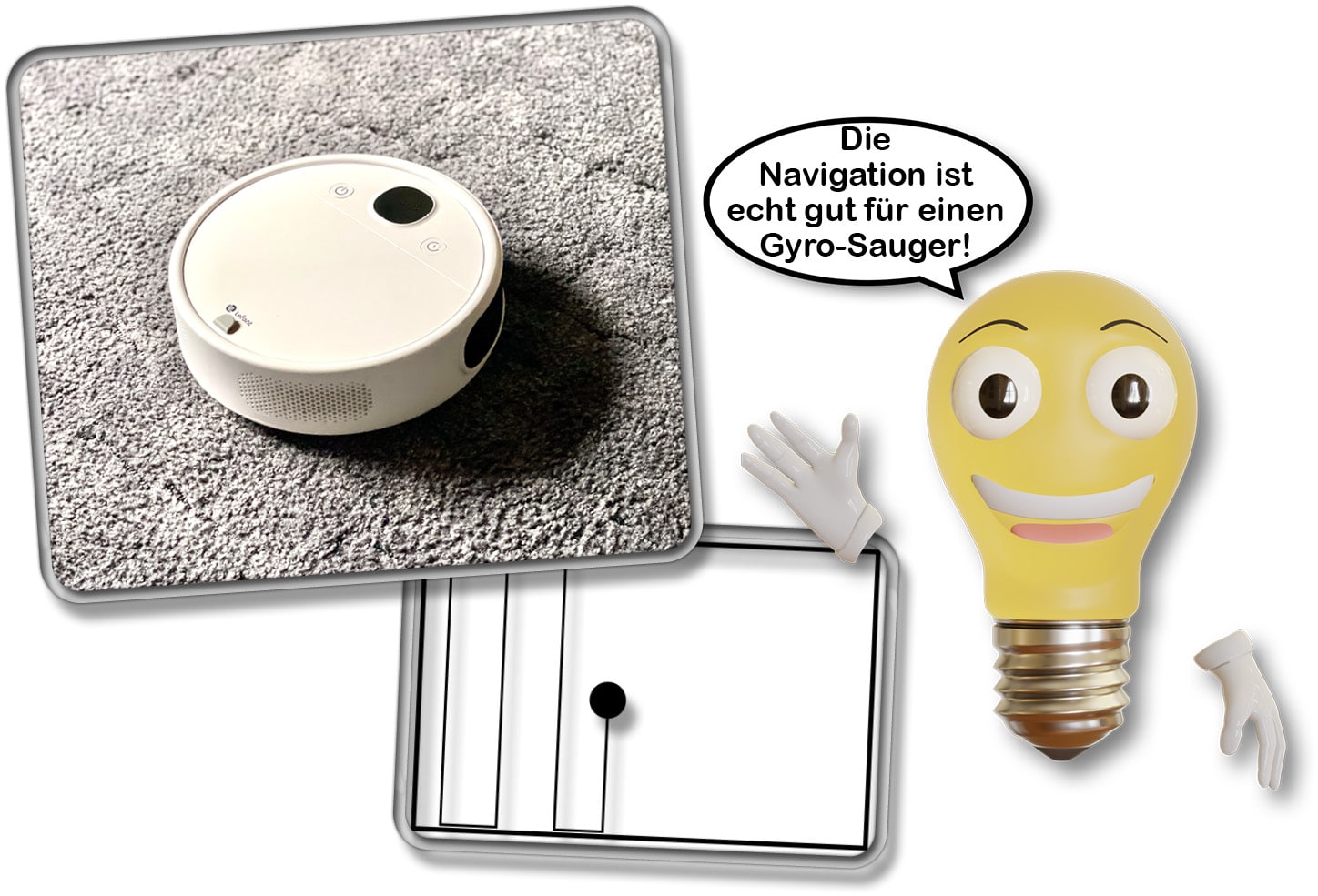 Jetzt kommen wir zum praktischen Teil. Der Lefant P1 verfügt über eine Gyroskop-Navigation. Ein Gyroskopsensor im Inneren merkt sich also durch die Drehbewegung und Laufgeschwindigkeit der Räder und weiß somit immer, wo der Saugroboter ist, wo er schon war und wohin er noch muss. Ebenso führt diese Technologie zu einer geraden Bahnfahrt durch die Räume. Jedoch führt jedes kleine Problem dazu, dass sich bei dieser Art der Navigation, die Bahn des Roboters verschiebt.