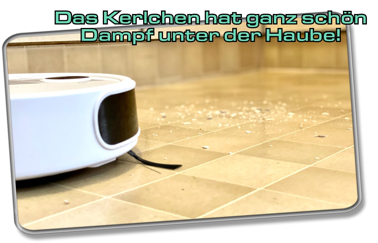 Ausgelegt ist das Gerät explizit für Haushalte mit vielen herumliegenden Haaren. Das macht er auch wirklich hervorragend, da kann ich absolut nicht meckern. Kaum ein Haar bleibt noch zurück. Sogar gröbere Verschmutzungen saugt er zuverlässig ein, wären da nicht die viel zu schnell rotierenden Seitenbürsten. Diese schleudern oftmals herumliegenden gröberen Schmutz weit weg und so bleibt gerne mal etwas liegen. Zwar versucht der Hersteller mit Softwareupdates dieses Problem zu beheben, jedoch konnte ich trotz Aktualisierungen noch keine großen Veränderungen erkennen.