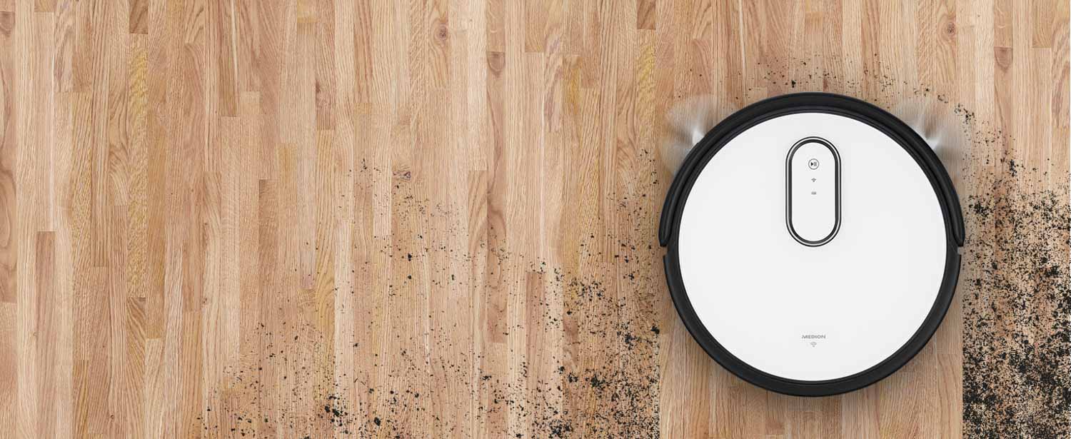 Für die Steuerung des Roboters hast du mehrere Möglichkeiten zur Auswahl. Zum einen lässt sich der Saugroboter über die auf dem Roboter angebrachten Tasten oder der beiliegenden Fernbedienung bedienen. Zum anderen kannst du ihn in die MEDION App einbinden und den vollständigen Funktionsumfang abrufen. In ihr kannst du zwar keine Karte einsehen, da der MEDION S40 nicht über eine Kartenerstellung verfügt, jedoch kannst du die Saugleistung nach deinen Bedürfnissen anpassen oder eine geplante Reinigung programmieren. Ebenso lassen sich mit ihr die verschiedenen Reinigungsmodi abrufen. Wenn du es noch komfortabler möchtest, dann verbinde den MEDION S40 einfach mit Alexa oder Google und starte oder stoppe ihn über deine Sprachbefehle.