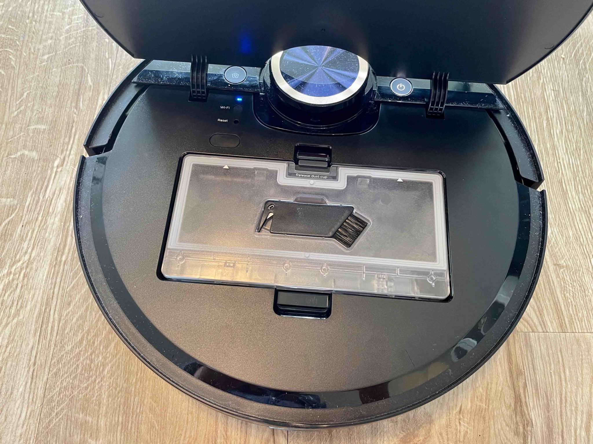 - Midea M7 Pro mit Reinigungswerkzeug am Staubbehälter
