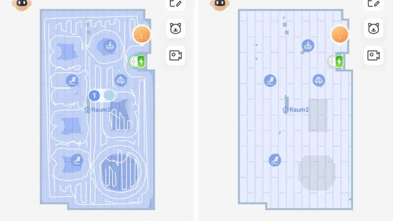 | Räume & Zonen | Der Saugroboter kann entweder alles, einzelne Räume oder Zonen saugen. |