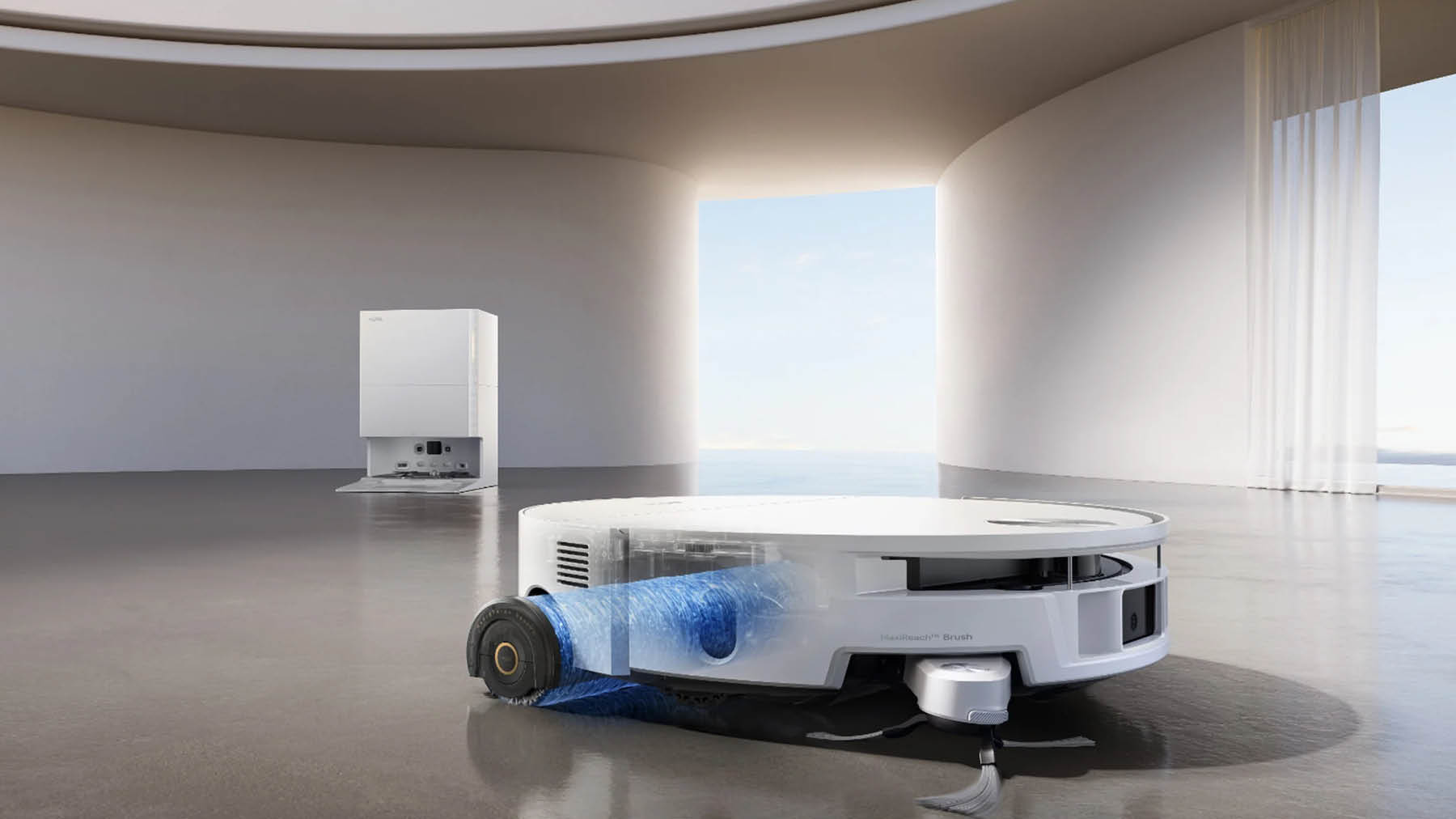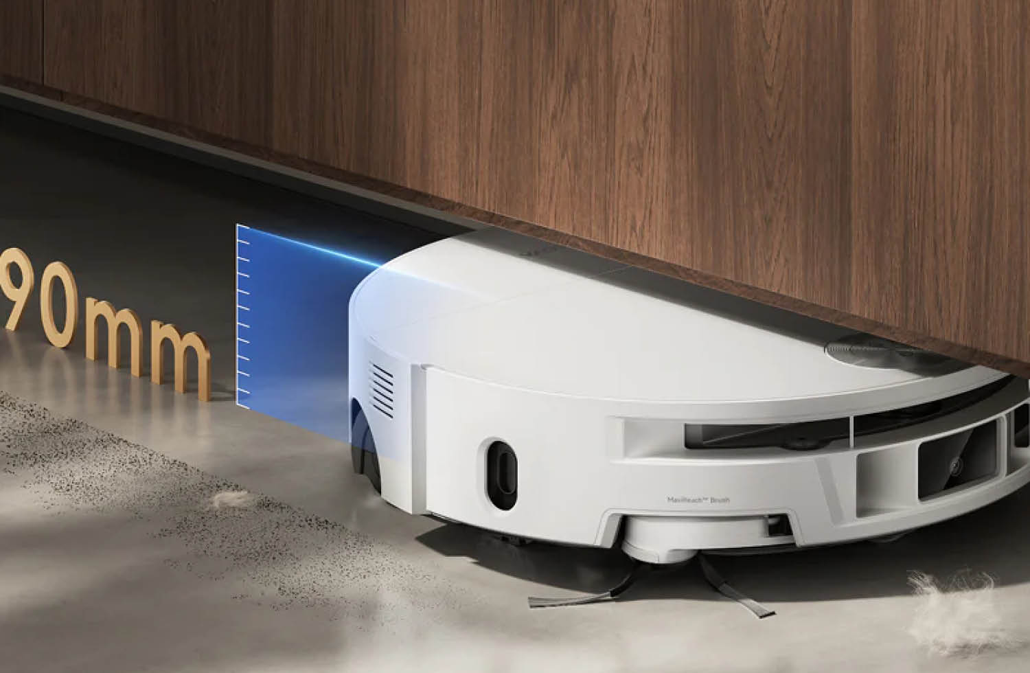 Besonderheit dieses Modells: Trotz Wischwalze ist das Gehäuse nur 90 mm hoch – diese Bauhöhe ist bei Saugrobotern mit Wischwalze bisher unerreicht. Somit kommt der Roboter unter viele Möbelstücke. Möglich wird das durch einen DToF-Lasersensor, der nicht in einem Turm, sondern in der Front sitzend die Navigation übernimmt. Die 27 cm breite Walze lässt sich seitlich erweitern, um Kanten und Ecken besser abzudecken.