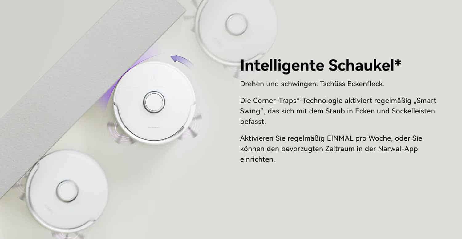 Ich selbst finde den Narwal Freo sehr interessant, da er eben ein paar Features besitzt, die die Konkurrenz immer noch nicht bieten kann. Zum einen ist da die anhebbare Bodenbürste, die jedoch schon bei Dreame in bisher unverkäuflichen Prototypen aufgetaucht ist. Zum anderen ist da die einfache Funktion, dass man zuerst alles saugen lassen kann und im Anschluss wischen. Das ist eine einfache Programmierung, die bisher jedoch kaum ein anderer Hersteller bietet. Auch der unterschiedliche Druck beim Wischen auf Hartboden dank Bodensensor, finde ich, interessant, wenn es denn auch so funktioniert wie beschrieben. Der Rand-Wackel-Modus hingegen, so wie ich ihn nenne, finde ich jedoch eine verzweifelte Herangehensweise an das Problem mit der Wischfunktion und dem Randbereich. Nicht sonderlich beeindruckend und bestimmt ziemlich zeitaufwändig. Auch die komische Form der rotierenden Wischmopps kann zu einem Verklemmen führen, wie ich schon beim yeedi mop station feststellen musste.