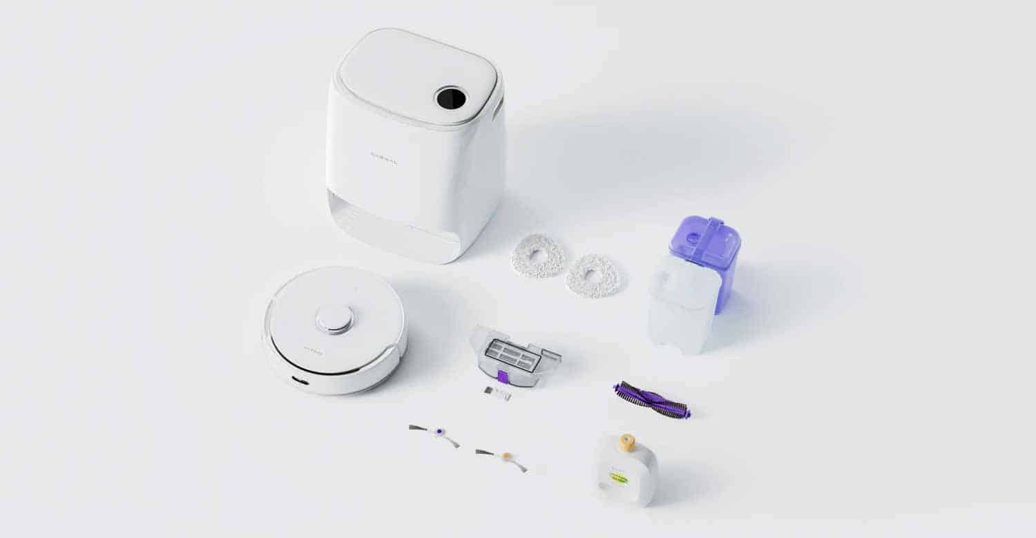 Die Station des Narwal Freo besitzt eine kleine Garage, in der der Roboter zum Aufladen hineinfährt. Dort wird er jedoch nicht nur aufgeladen, sondern seine Wischmopps werden darin gesäubert.