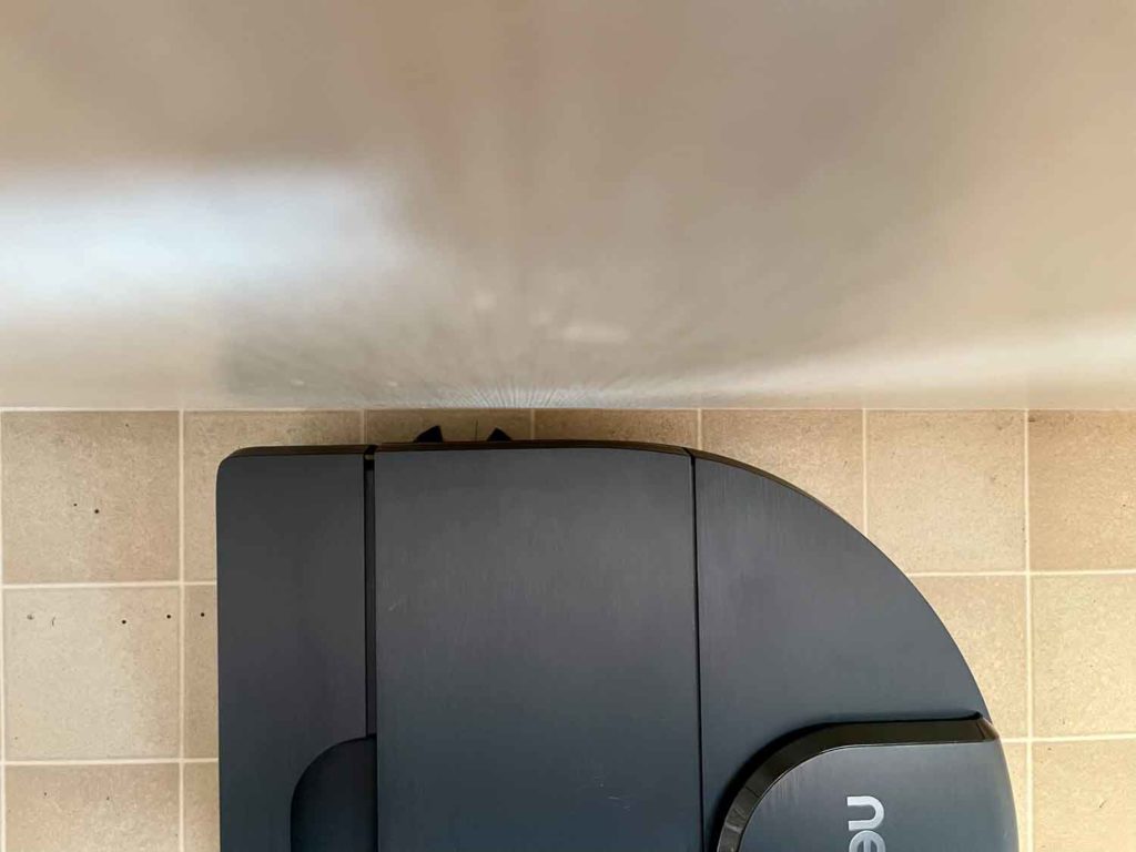 Die Hinderniserkennung ist, kurz gesagt, nicht vorhanden. Natürlich besitzt der Neato D8 einen Bumper, mit dem er sich überall entlangtastet. Jedoch gibt es, außer dem LIDAR-System, keinerlei Sensorik, die dem Roboter sagen, was vor ihm liegt. Das kann dann auch gerne mal dazu führen, dass er mit seiner D-Form in eine Engstelle hineinfährt und sich dort völlig verkeilt oder einfach nicht mehr herauskommt. Auch werden Hindernisse, die sich unterhalb der Höhe des Laserturms befinden, mit voller Wucht angerempelt oder über den Haufen gefahren. Man sollte also lieber alles aus dem Weg räumen, wenn man den Roboter losschickt. Er besitzt einen starken Willen und hat viel Kraft.