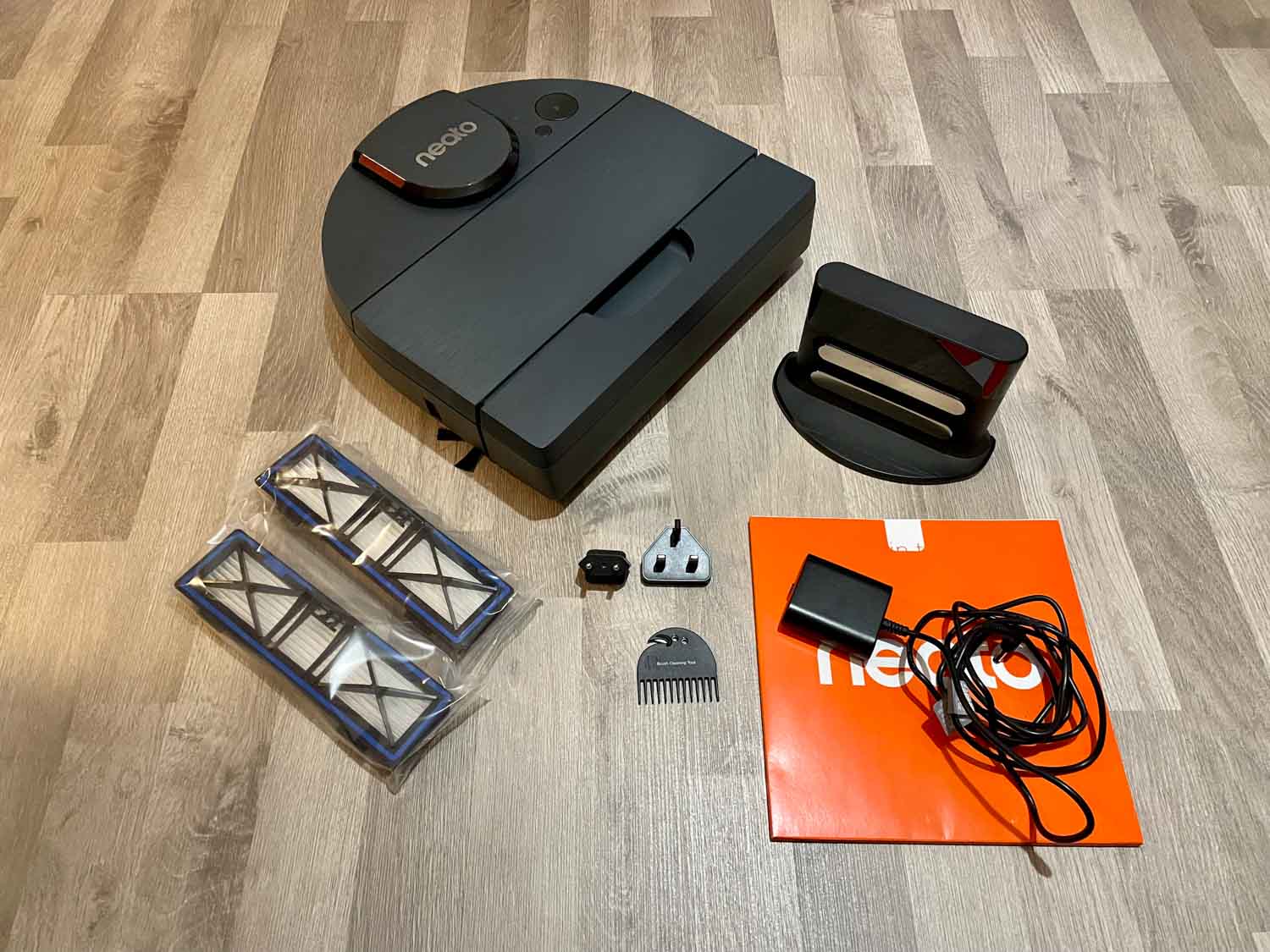 Neato hat schon früher seinen Saugrobotern keinen großen Lieferumfang mit auf die Reise gegeben. Daran hat sich auch heute nichts geändert. Man bekommt, bis auf zwei weitere Feinstaubfilter, nur das Nötigste mitgeliefert. Im Lieferumfang befindet sich Folgendes: