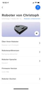 Der Roboter hätte normalerweise die Möglichkeit, mehrere Etagen einspeichern zu können. Jedoch weist Neato in der App darauf hin, dass diese Funktion noch nachgereicht wird. Einerseits steht das dort schon seit Herausgabe des Gerätes, was bereits eine längere Zeit ist, anderseits ist der Erwerb eines Gerätes, das noch nicht alles vollständig kann, doch eher fragwürdig. Zum momentanen Stand ist das Erstellen von mehren Etagen nicht möglich.