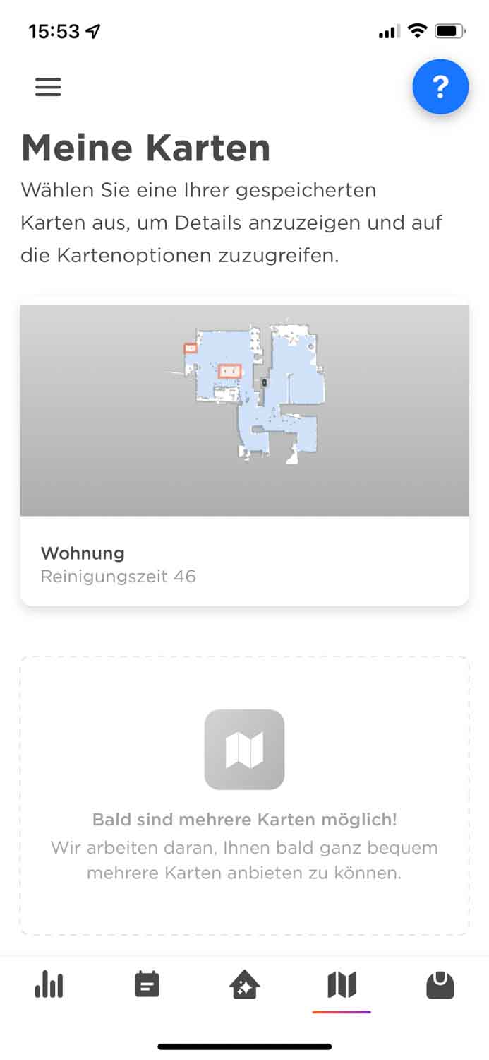 Die App ist wirklich sehr übersichtlich. Das liegt wahrscheinlich daran, dass es kaum individuelle Einstellmöglichkeiten gibt. Es ist weder möglich, mit der erstellten Karte groß zu interagieren, noch ist es möglich, die Saugleistung während der Reinigung zu verstellen. Eine Verbrauchsanzeige der Verschleißteile fehlt gänzlich und an eine Fernsteuerung wurde auch nicht gedacht. Das ist gerade dann tragisch, wenn der Roboter sich unter dem Bett festfährt. Von einem individuellen Einstellen der Leistungen in verschiedenen Räumen, möchte ich gar nicht erst anfangen zu sprechen. Die ganze App ist auf das Nötigste reduziert oder einfach nur auf dem Stand vor 6 Jahren.