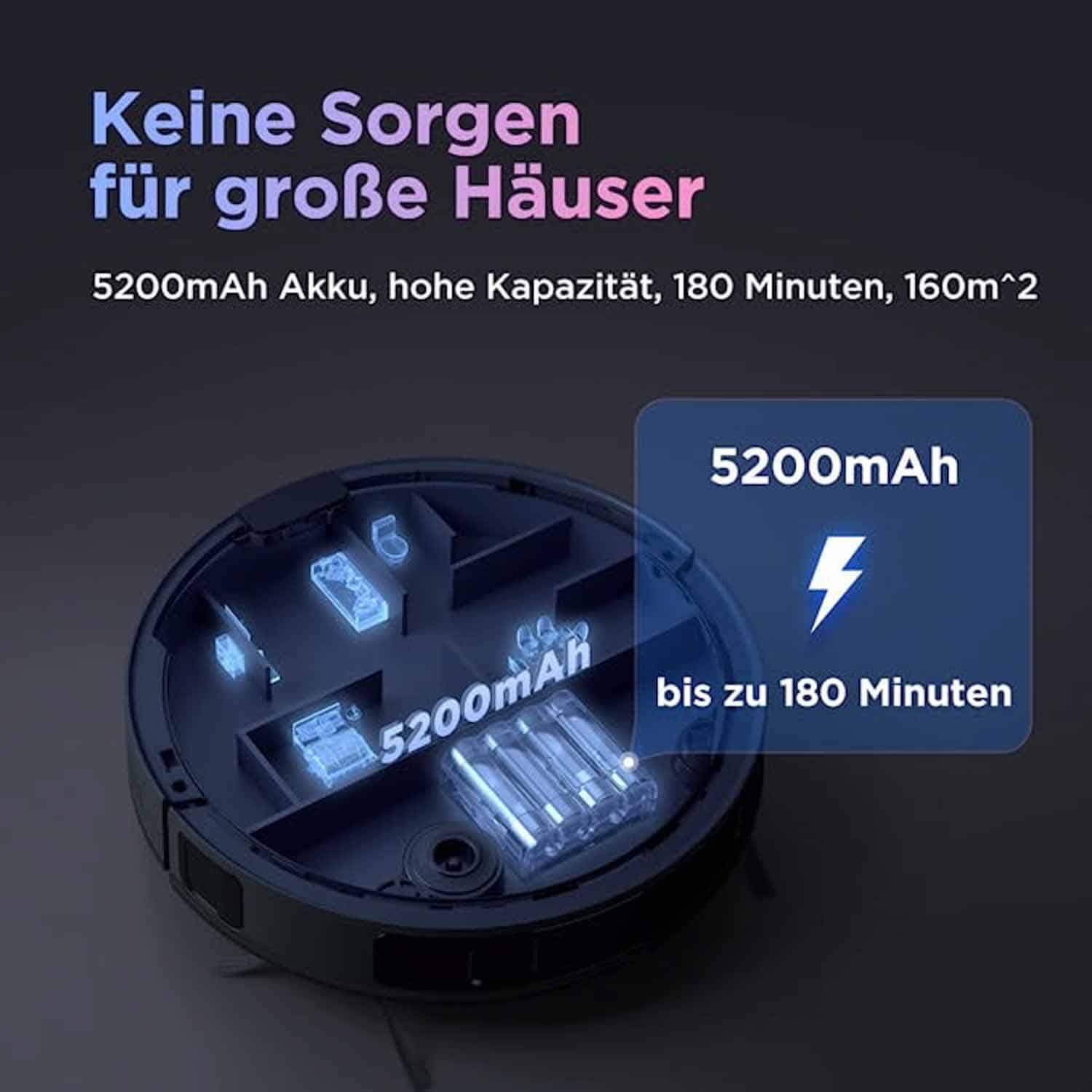 Der Hersteller gibt an, dem Obode A8 satte 4000 Pascal Saugkraft und einen durchhaltenden Akku mit 5200 mAh spendiert zu haben. Zudem besitzt der Roboter eine spezielle Bodenbürste, die lediglich aus Borsten besteht, die sich im Härtegrad unterscheiden. Die Kombination aus Leistung und Bauteilen kommen somit mit jedem anfallenden Hausschmutz klar, auch in größeren Umgebungen. Auf Teppichboden kann der Obode A8 seine Saugkraft, dank eines verbauten Ultraschallsensors, auf ein Maximum erhöhen. Das sorgt für eine tiefenreine Sauberkeit.