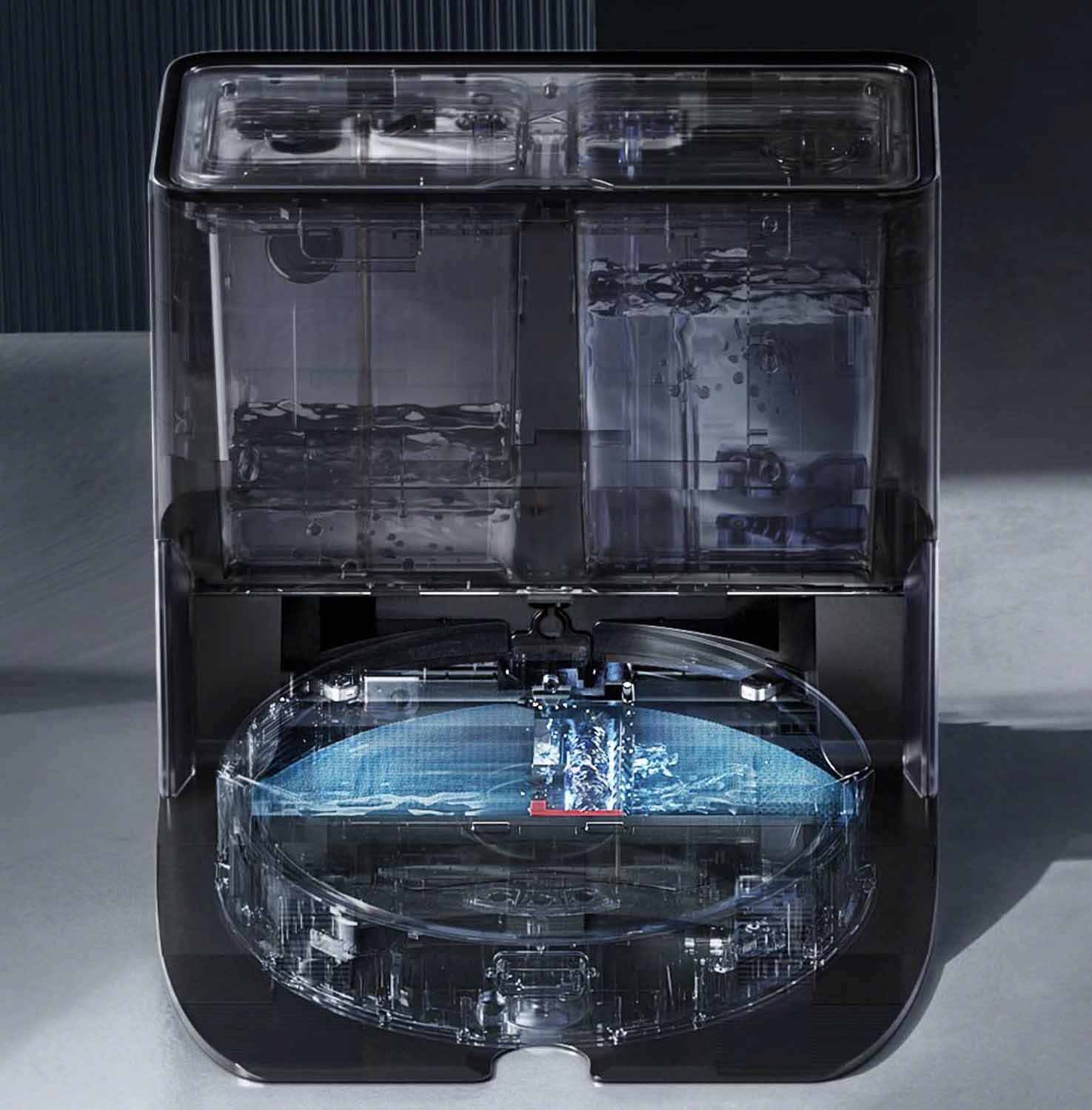 Zur Freude aller muss man sich beim Roborock G10 nicht mehr um den im Roboter befindlichen Wassertank kümmern. Dieser wird ebenfalls von der Waschanlage während des Reinigungsvorganges vollautomatisch wieder befüllt. Eine vollautomatische Absaugstation besitzt die Waschanlage nicht. Der Staubbehälter, der während dem Wischen ebenfalls befüllt wird, muss immer mal wieder von Hand entleert werden.