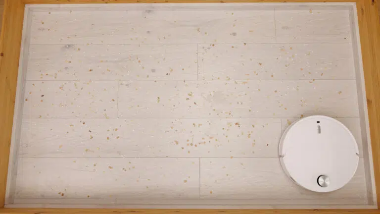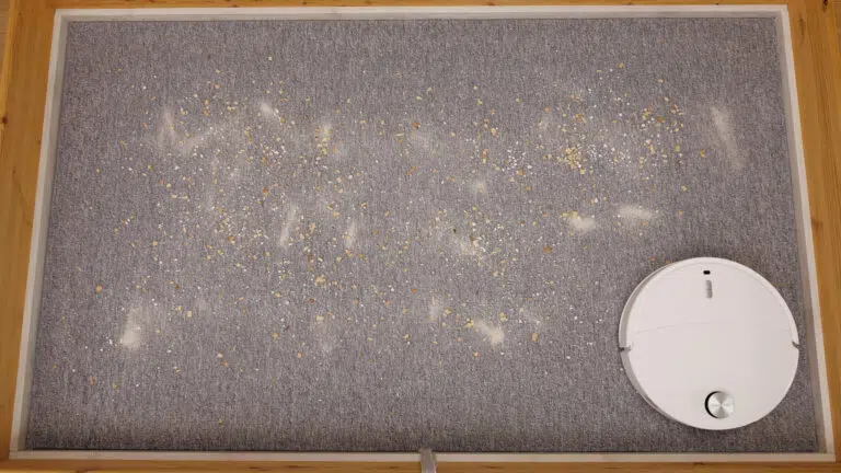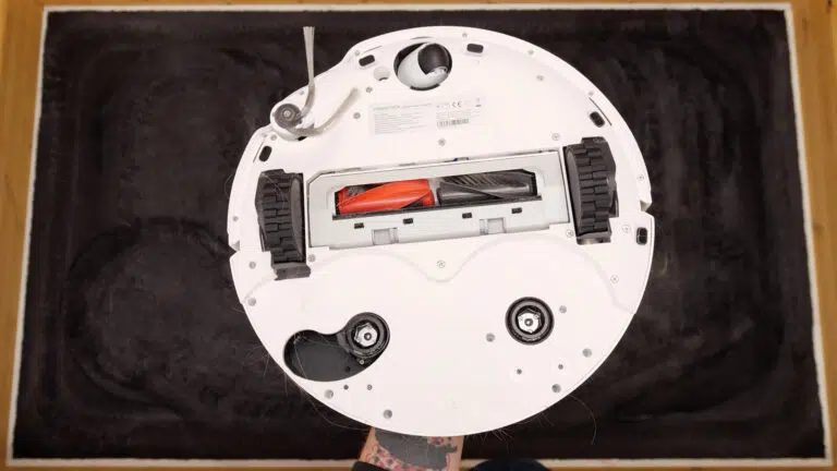 Enttäuschend war hingegen die Leistung in unserem Wischtest. Größere Verschmutzungen hat der Roborock Qrevo Curv 2 Pro nicht entfernen, geschweige denn aufnehmen können. Auch die Heißwasserwischfunktion konnten wir kaum nachmessen. Die Hinderniserkennung war zudem nur durchschnittlich, außerdem fehlen kleinere Features wie ein Reinigungsmitteltank oder eine anhebbare Seitenbürste.