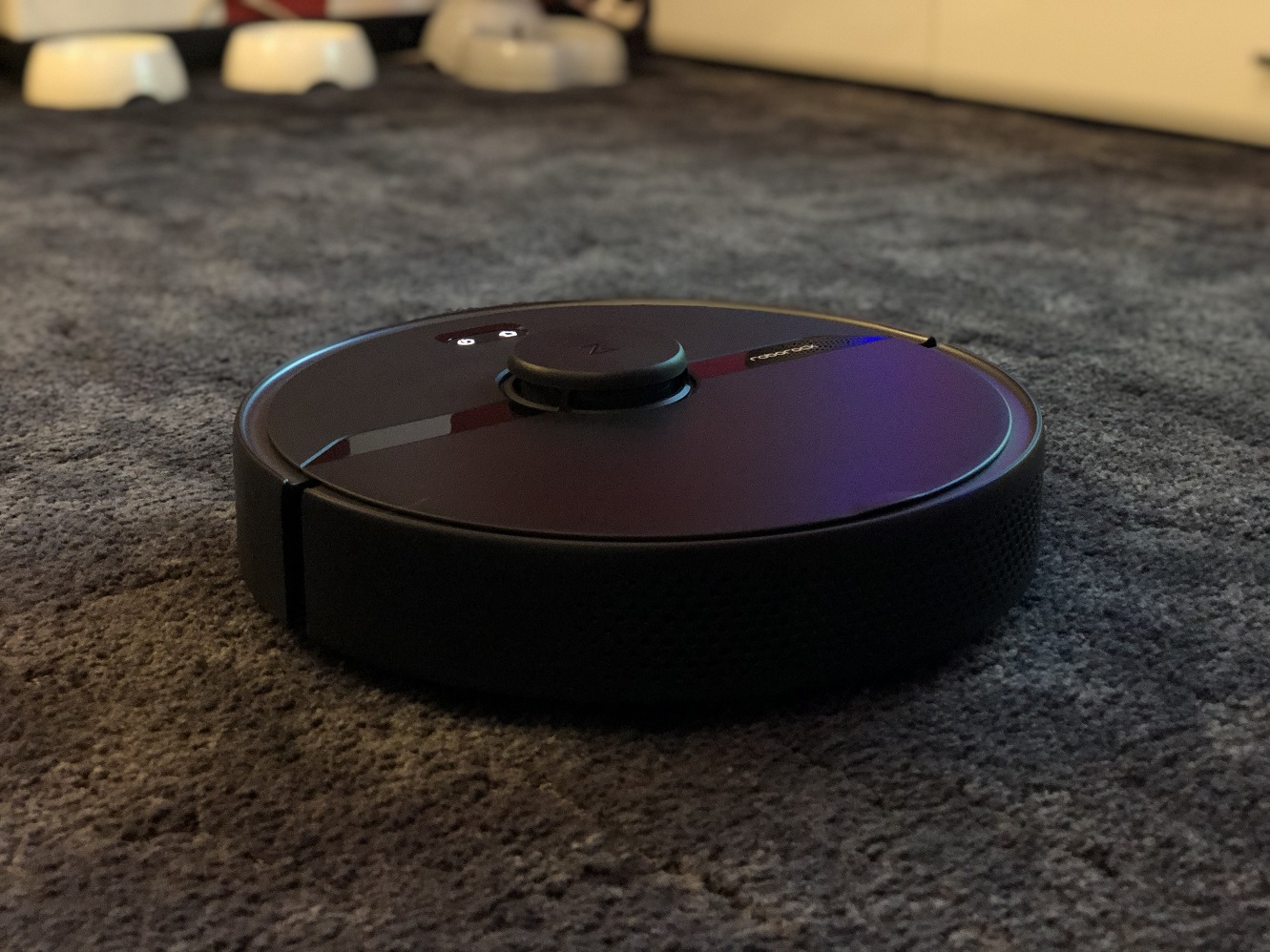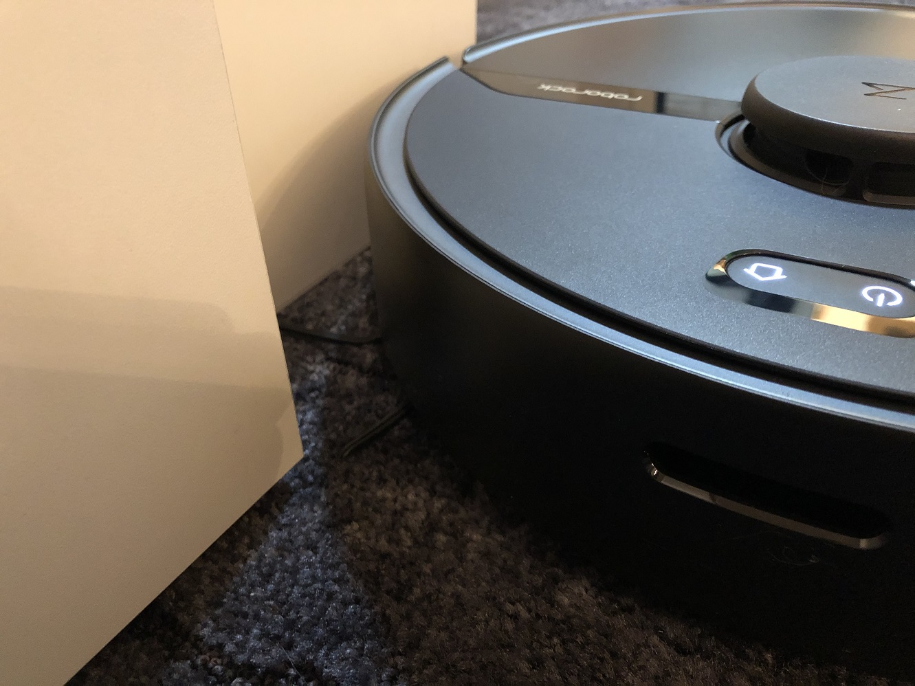 Wie allseits bekannt, haben fast alle Saugroboter erhebliche Probleme mit dunklen Flächen. Auch der Roborock S6 Pur ist vor diesen nicht gefeit. Er erkennt schwarze Möbel oder Hindernisse nicht zuverlässig. Sobald er auf solch ein schwarzes Möbelstück zufährt, kann es schon mal vorkommen, dass dieses ignoriert und mit voller Wucht gerammt wird. Auch schwarze Teppiche können ihn vollkommen verwirren. Er denkt, es befindet sich ein Abgrund vor ihm, da seine Sensoren das Schwarz im Teppich als einen Abgrund erkennen. Er befährt somit keine schwarzen Flächen.