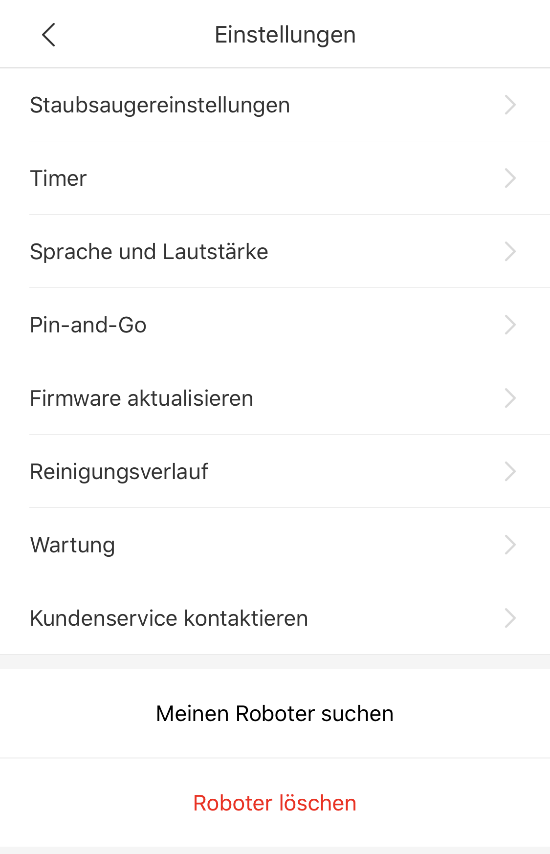 Es gibt noch eine Vielzahl an weiteren Einstellmöglichkeiten und Ansichten, die durch das Klicken auf die drei Punkte im oberen Bereich der App angesteuert werden können. In diesen lässt sich etwa der Kartenspeichermodus aktivieren oder deaktivieren, das Licht auf dem Roboter löschen, die Teppicherkennung zuschalten, einen Timer setzen für die selbstständige Reinigung der Räume oder sogar einzelner Räume, den Roboter fernsteuern oder an einen beliebigen Punkt auf der Karte setzen, den Reinigungsverlauf einsehen und den Verschleiß der Verschleißteile kontrollieren.
