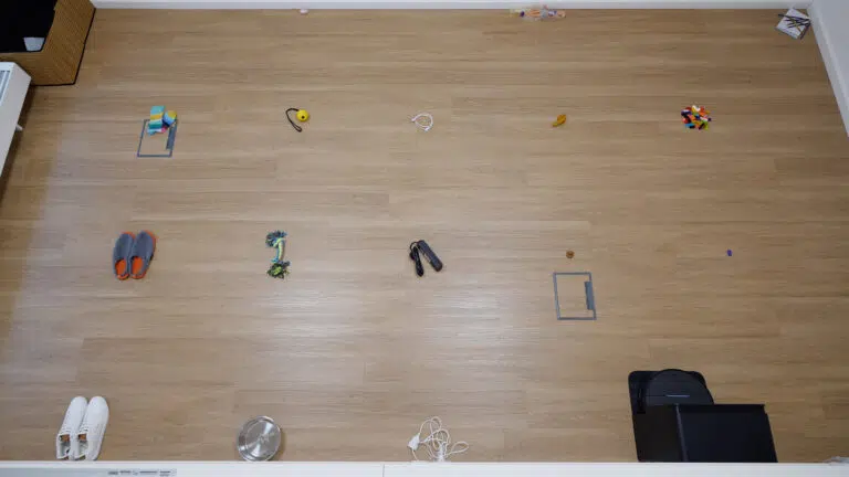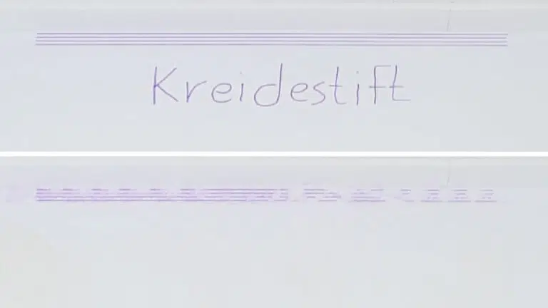 Vor dem Wischen wurden vier 1 Meter lange Linien mit Kreidestift auf die weiße Testplatte gezeichnet, jeweils im Abstand von 1 cm zueinander. Die Bewertung erfolgte anhand der vollständig überfahrenen Linien. Der Roborock Saros 10 hat in diesem Test überzeugt: Alle Linien wurden erreicht, was auf eine effektive Randreinigungsfunktion hindeutet. Obwohl die Fleckenentfernung insgesamt nicht zufriedenstellend war, zeigt die Randreinigung eine brauchbare Leistung.