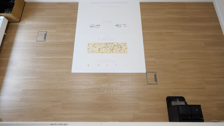 Die rotierenden und ausfahrbaren Mopps erreichen Randbereiche sehr gut. Leichte Verschmutzungen werden ordentlich reduziert. Hartnäckige Flecken wie eingetrockneter Ketchup konnten im Test jedoch nicht vollständig entfernt werden. Die Heißwasser-Moppwäsche der Station reinigt die Mopps selbst sehr effektiv.