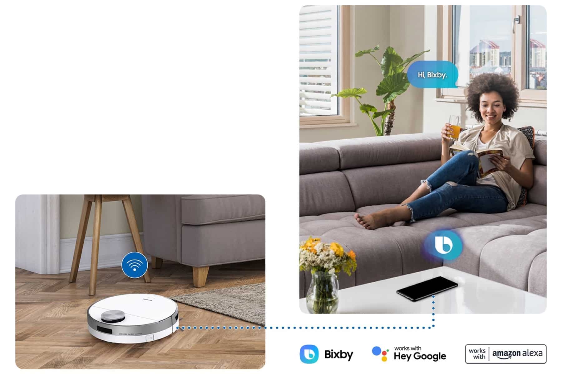 Wenn du es noch komfortabler möchtest, hast du die Möglichkeit den Roboter über deine Sprache zu steuern. Den Samsung JetBot+ kannst du mit verschiedenen externen Sprachassistenten verbinden und ihm so befehle erteilen. Hierzu eignen sich Amazons Alexa, Google Home oder den hauseigenen Sprachassistenten Bixby.