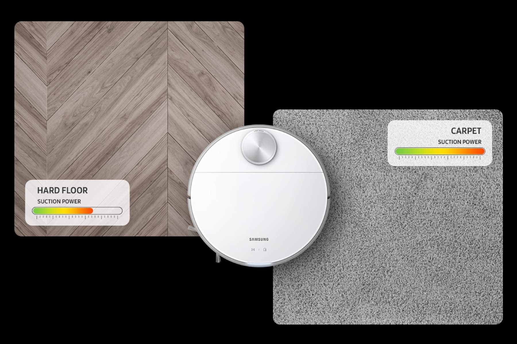 Kurz und knapp: Nein, eine Wischfunktion hat Samsung nicht verbaut. Beim Samsung JetBot+ handelt es sich um einen reinen Saugroboter. Dieser soll mit einer starken Saugkraft und einer speziellen Bodenbürste punkten. Die Bodenbürste besteht aus feinen Borsten und antistatischen Silberfasern. Dazu kommt, dass kleine verbaute Messer lange Haare zerschneiden, damit diese im Staubbehälter landen und sich nicht um die Bürste wickeln. Auf Teppichboden erhöht der Roboter vollautomatisch seine Saugleistung auf ein Maximum, damit auch tief sitzender Schmutz entfernt wird.