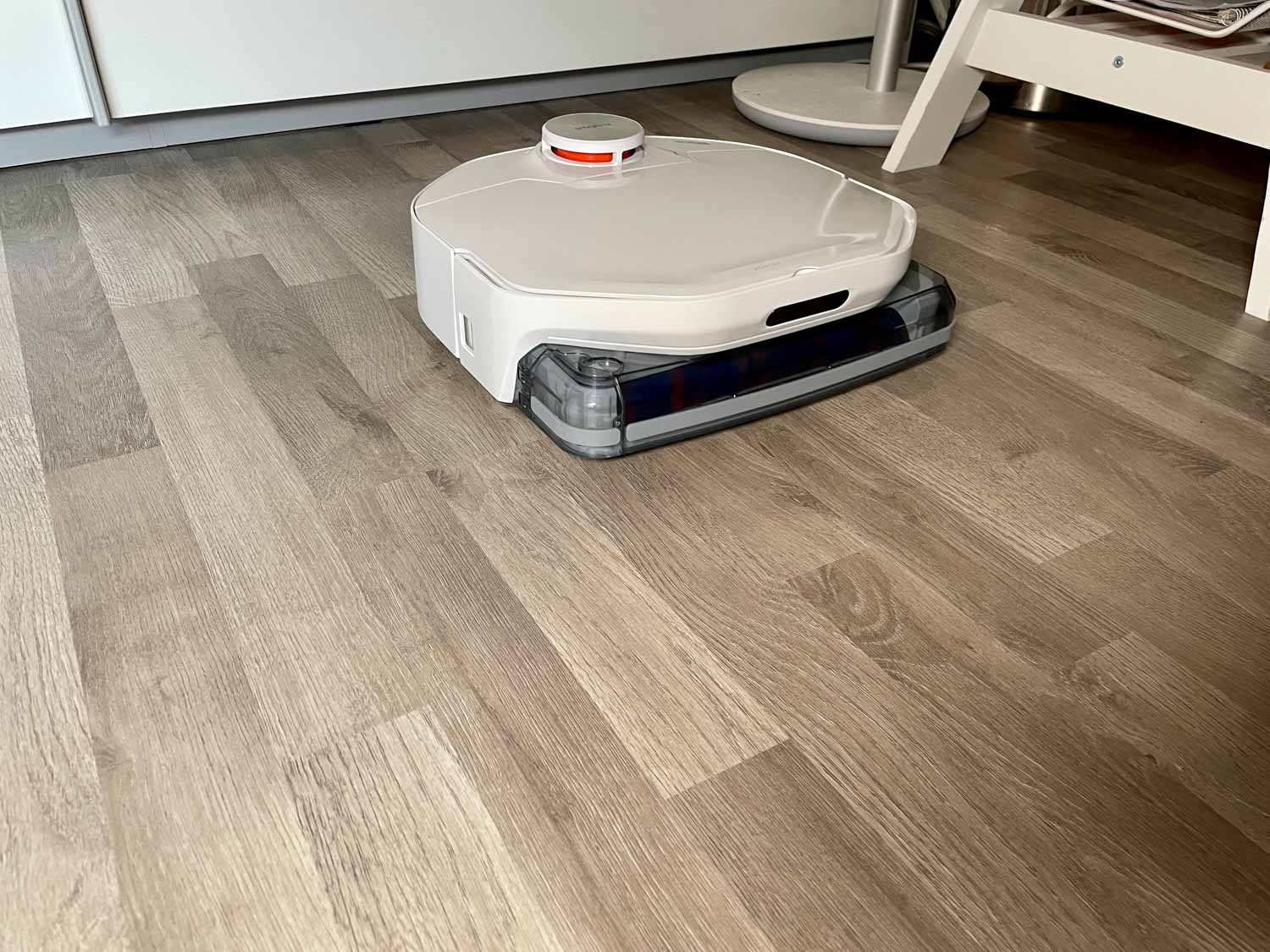 Durch sein abruptes Stoppen konnte ich ebenfalls feststellen, dass er gerne mal kleine Wasserpfützen zurücklässt. Im Grunde macht er, was er soll. Er bekommt den Boden zuverlässig gewischt und entfernt auch gröbere Verschmutzung. Jedoch ist das Wischbild in meinen Augen suboptimal. Die gesamte Reinigung ist laut, das muss dir klar sein. 4000 Pascal Saugkraft gehen nicht ungehört an dir vorbei. Ebenso ist die Trocknung der Walze deutlich hörbar.