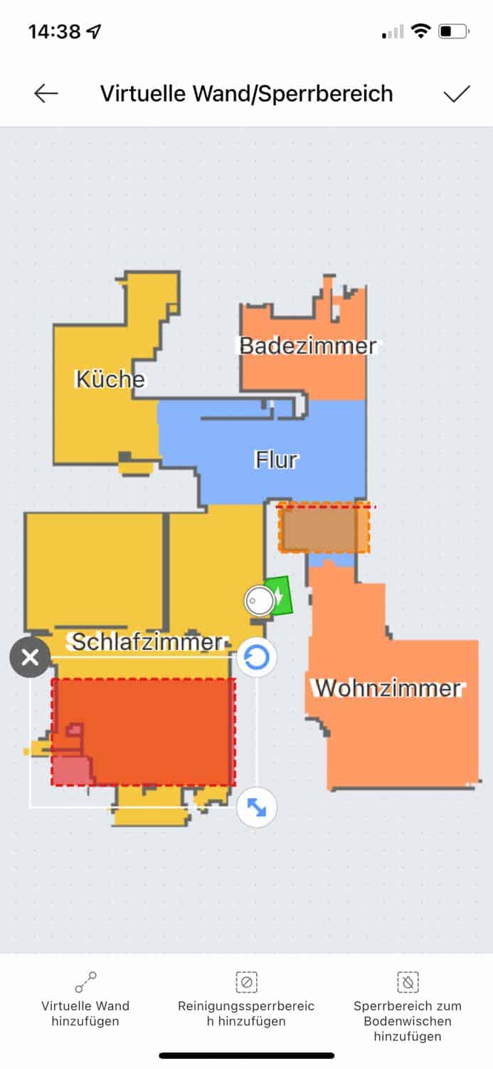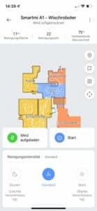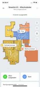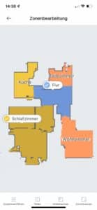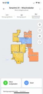 | Raumeinteilung | Der Roboter unterteilt die Karte in einzelne Räume. Diese können händisch angepasst werden. |