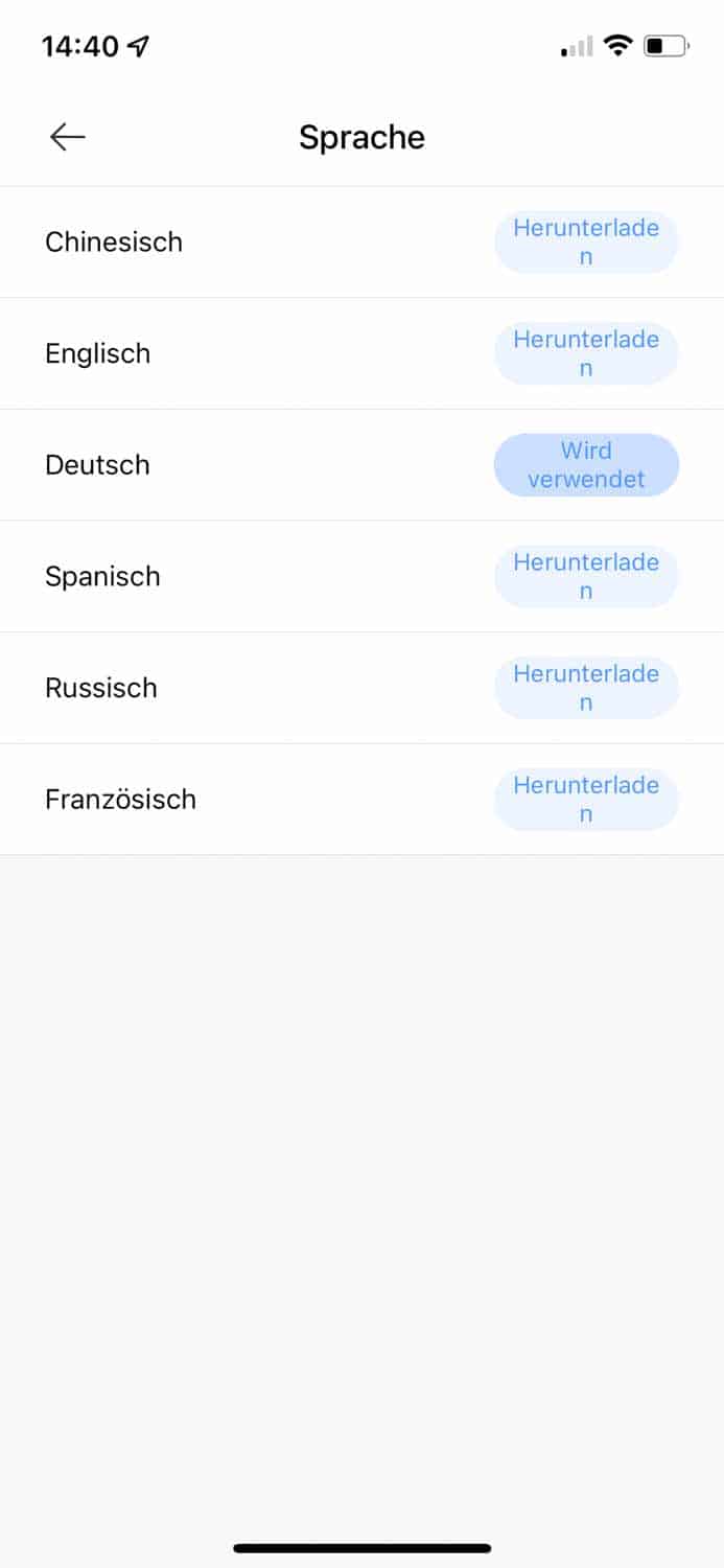 | Sprachauswahl | Die deutsche Sprachausgabe ist einstellbar, ebenso die Lautstärke. |