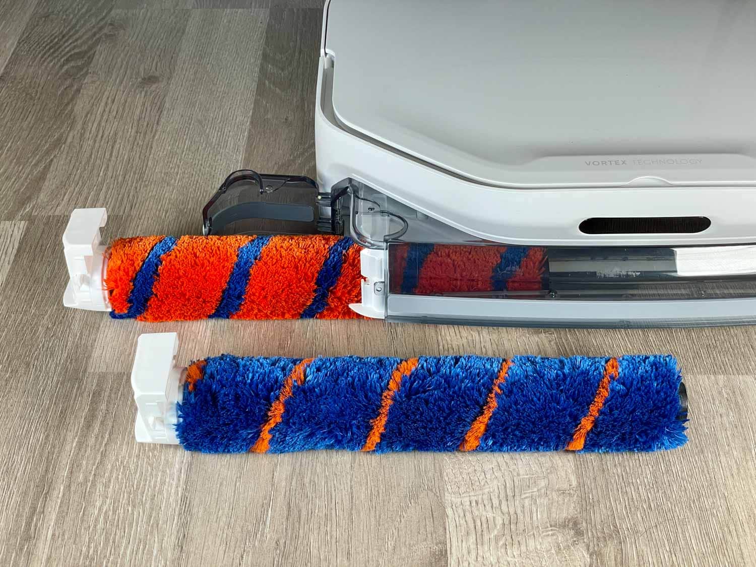 Beim Smartmi A1 Vortex Wave handelt es sich um einen Wischsauger, der sowohl wischen als auch saugen soll. Ganze 4000 Pascal Saugleistung erbringt das Gerät, jedoch würde ich ihn nicht dazu gebrauchen, gröberen Schmutz aufzusaugen. In meinen Tests habe ich vor jedem Wischvorgang alles gesaugt, damit mir nicht zu viel grober Schmutz im Abwassertank oder Filter landet. Das Prinzip der Reinigung des Smartmi A1 Vortex Wave ist an sich eine sehr hygienische Angelegenheit. Die rotierende Walze wird stetig mit frischem Wasser benetzt und kann sogar hartnäckigere Verschmutzungen entfernen. Eine Gummilippe dahinter saugt das Schmutzwasser wieder auf und befördert es in den Abwassertank. So bleibt kein schmutziges Wasser auf dem Boden zurück. So viel zur Theorie.