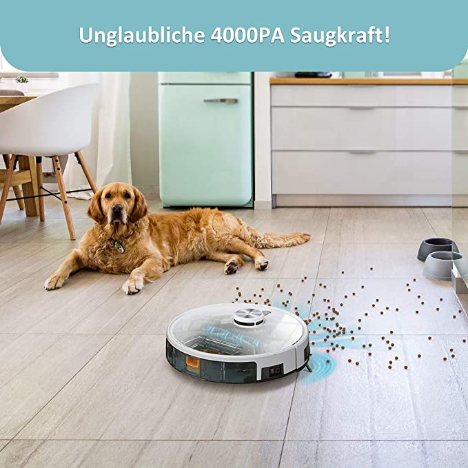 Na, da hat sich Tesvor doch mal etwas einfallen lassen. Endlich hat der neuste der Saugroboter der Firma so viel Leistung um auch große Wohnungen reinigen zu können. Auch für Teppichböden kann man sich den Tesvor S6 Turbo nun in die engere Auswahl holen, da 4000 stolze Pascal Kraft überdurchschnittlich gut aussehen. Die intelligente LiDAR-Technik führt zudem zu einer geraden Bahnfahrt und einer überlegten Planung der Reinigungsroute. Tesvor meint es ernst und hat hier ein überdurchschnittlich gutes Modell zu einem immer noch recht günstigen Preis erschaffen.