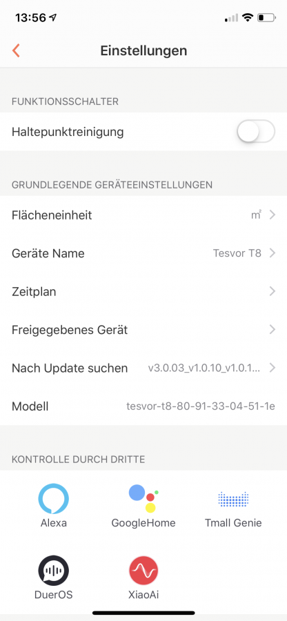Ebenfalls lässt sich der Tesvor T8 mit Amazons Alexa und dem Google Assistant kuppeln. Zwar ist nur das Starten und Stoppen des Roboters möglich, dafür ist dieser bei Alexa als Gerät gelistet und kann so durch eine Routine mit eigenen Start- oder Stopbefehlen gesteuert werden.