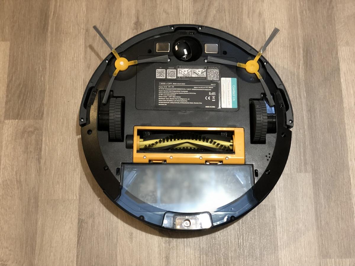 Am Ende jedes Reinigungsvorganges reinigt der Tesvor T8 noch einmal alle Ränder und Ecken des abgefahrenen Bereichs. Durch seine sehr weit vorn angebrachten Seitenbürsten kommt er damit recht gut in die Ecken. Natürlich nur so weit, wie es die runde Bauform zulässt. In seiner abschließenden Randreinigung fährt der Roboter recht nahe an den Rändern entlang und findet so den dort liegen gebliebenen Schmutz. Seine zwei Seitenbürsten rotieren meiner Meinung nach zu schnell, was das Wegschleudern von Schmutz, vorwiegend auf Hartböden, leider immer wieder aufweist.