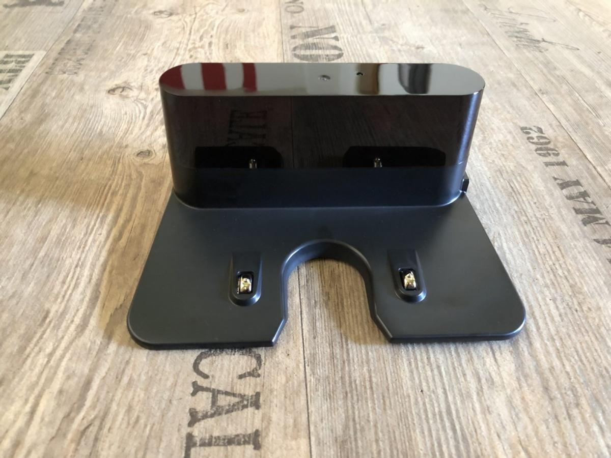 Die mitgelieferte Ladestation ist relativ klein und komplett in schwarz gehalten. Sie besitzt eine LED auf der Oberseite, die den Anschluss an das Stromnetz durch Blinken anzeigt. Diese LED erlischt leider nicht, was eine Unterbringung im Schlafzimmer nicht gerade sinnvoll macht. Sie besitzt leider keine Kabelaufwicklung und das separate Netzkabel kann nur von einer Seite aus angeschlossen werden.