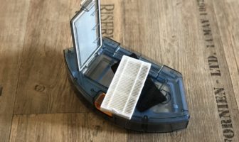 Der transparent gehaltene Staubbehälter fasst ein Volumen von 0,6 Liter und ist somit im oberen Drittel der Größenverhältnisse von Staubbehältern angesiedelt. Er ist einfach aus dem Roboter zu entnehmen und auch das Leeren stellt sich als sehr leicht und hygienisch heraus. Die Staubfilter sind in einem extra Fach vom eigentlichen Behälter getrennt und lassen sich durch eine Klappe zum Reinigen entnehmen.