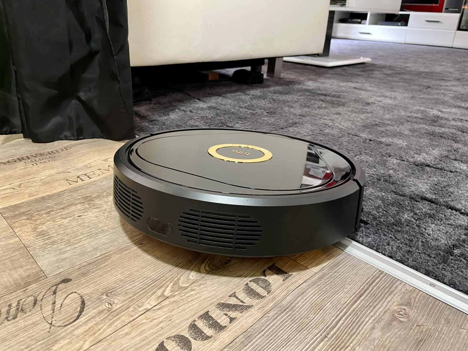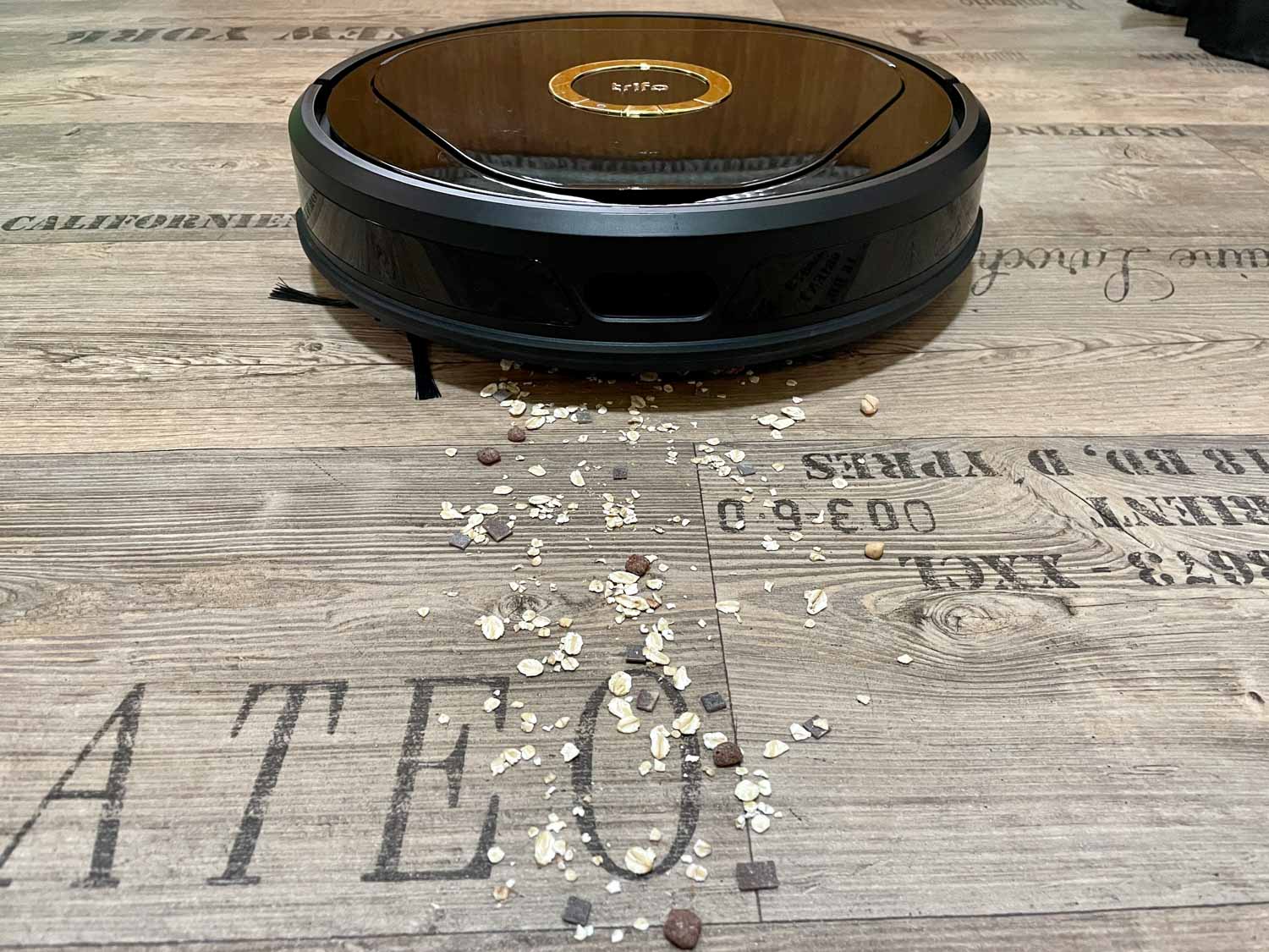 Der Hersteller hat dem Trifo Lucy angegebene 3000 Pascal Saugkraft spendiert. Diese ist, in Kombination mit eingesetzter Kombibodenbürste, recht effektiv. Der Roboter kommt gut mit täglich anfallenden Hausschmutz zurecht. Die Seitenbürste ist ebenfalls recht gut abgestimmt, was ein Wegschleudern von grobkörnigem Schmutz recht selten macht. Die Saugleistung ist jedoch auch ziemlich laut, wenn sie auf die höchste Stufe eingestellt ist. Der Trifo Lucy besitzt eine Teppicherkennung, die jedoch viel zu fein eingestellt ist. Auf Hartboden aktiviert sie sich ständig automatisch, obwohl weit und breit kein Teppichboden vorhanden ist. Auf Teppichboden selbst funktioniert sie dafür tadellos und ohne Unterbrechung.