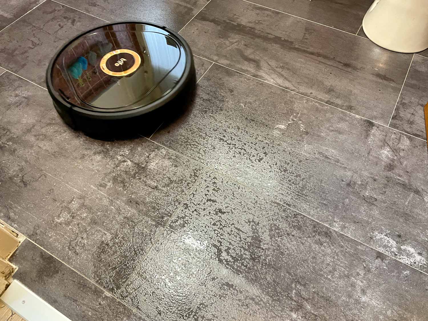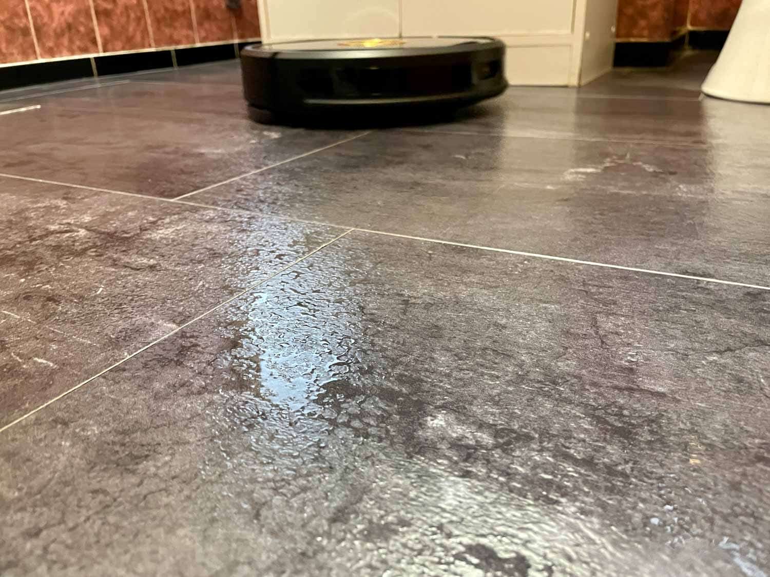 Zudem gibt der Tank so viel Wasser aus, dass sich überall Pfützen bilden und das Wischbild überaus nass ist. Bei regelmäßiger Verwendung auf Laminat oder anderen empfindlichen Böden werden diese sicherlich ruiniert dadurch. Bitte Vorsicht weiten lassen bei der Wischfunktion. Das Wischbild ist viel zu nass und somit als Wischfunktion, die das Wischen von Hand ersetzen kann, ungeeignet.