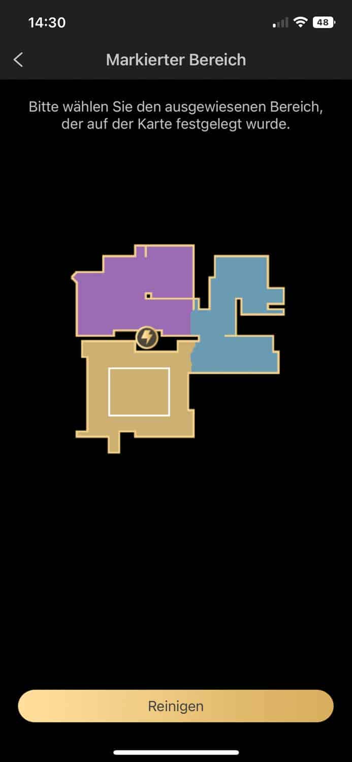 | Markierter Bereich | Der Roboter reinigt nur den auf der Karte markierten Bereich. |