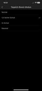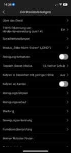 | Teppicherkennung | Der Roboter kann bei Aktivierung seine Leistung auf Teppichboden in individuell einstellbaren Stufen steigern. |