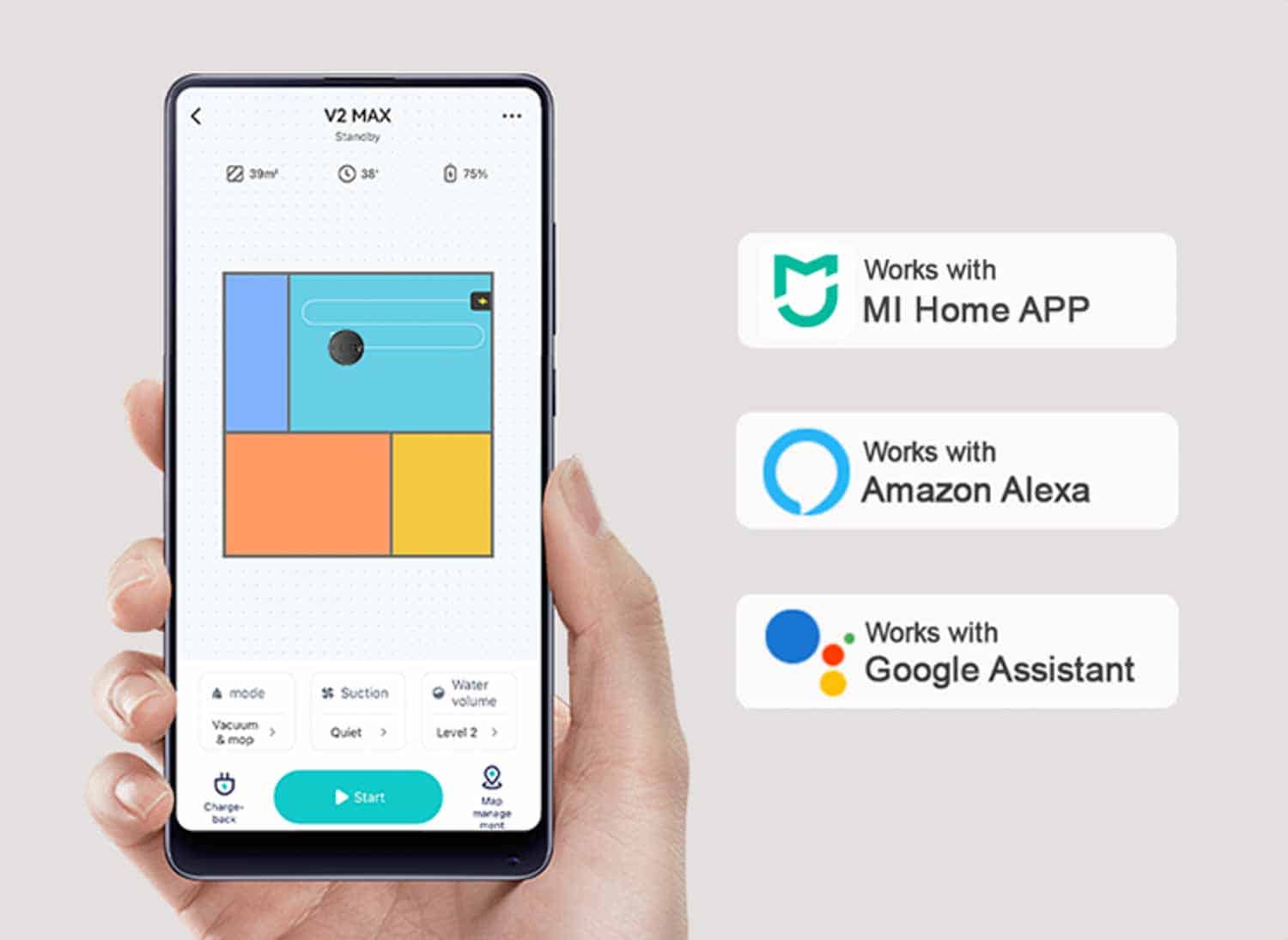 Wenn du es noch bequemer haben möchtest, dann kannst du den Saug-Wischroboter auch mit externen Sprachassistenten wie Alexa oder dem Google Assistant verknüpfen. So kannst du den Roboter über deine Sprache starten oder stoppen.