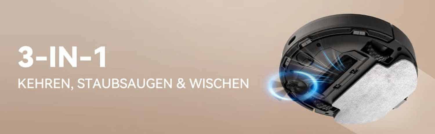 Obwohl der Fokus auf der Wischfunktion liegt, wurde, wie schon angesprochen, keine vibrierende oder oszillierende Funktion eingebaut. Ebenso kann er nicht sein Wischtuch anheben, wenn er Teppichboden befährt. Er kann lediglich Teppich meiden, wenn man im Vorfeld wischfreie Sperrzonen auf der Karte einzeichnet. Die Konkurrenz bietet schon ausgeklügeltere Wischsysteme an, die deutlich effizienter arbeiten können. Die Marke Roborock verbaut in ihren Topmodellen unter anderem die VibraRise und Sonic Mopping Technologie ein. Das spiegelt sich jedoch im Preis der Geräte wider.