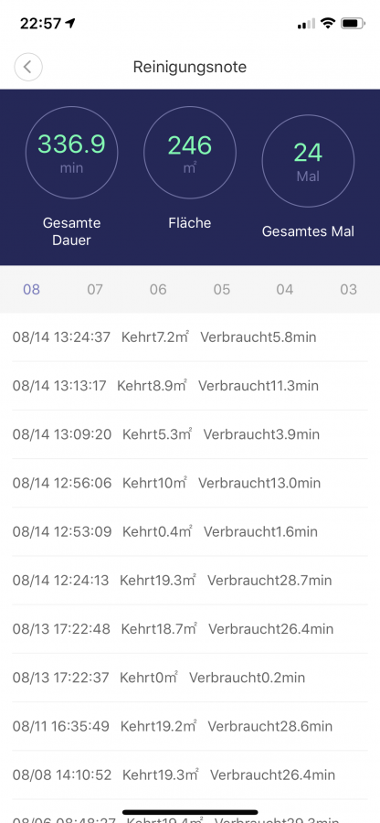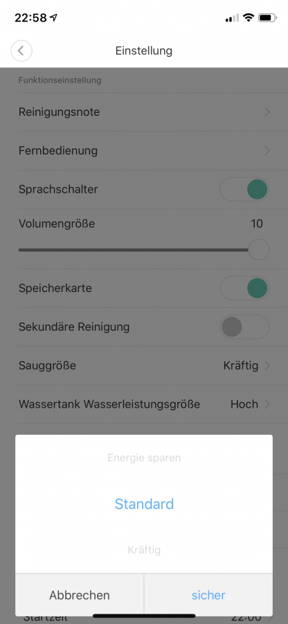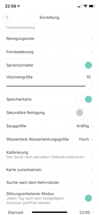 Die Karte wird nur angezeigt, wenn der Roboter in einer Reinigung ist. Das heißt, die Sperrzonen sind nur während des Reinigungsvorganges einsetzbar. Die üblichen Einstellmöglichkeiten sind auch mit an Bord inklusive einer Doppelreinigungsmöglichkeit. Ich spare mir das Eingehen auf die zusätzlichen Funktionen. Die Bilder erklären das von selbst.