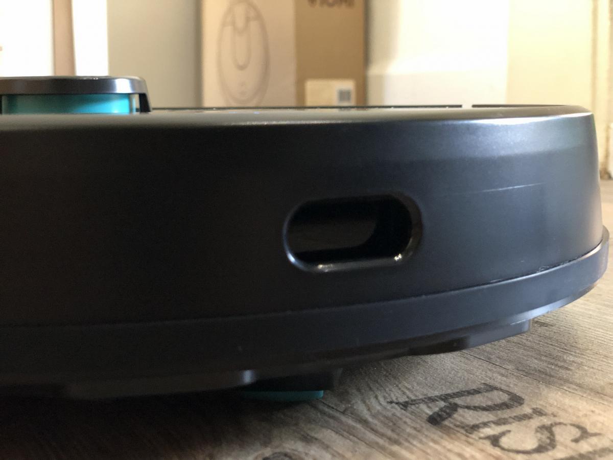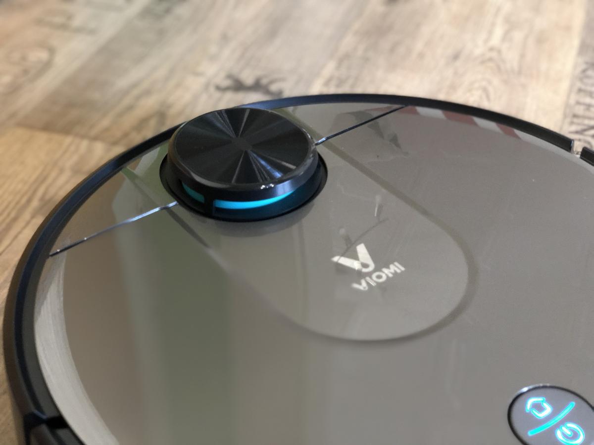 Der Viomi V2 sieht dem Xiaomi Mi Robot sehr ähnlich. Die Farbe ist anders und auch der Ultraschallsensor auf der Front ist ein Infrarotsensor geworden, dennoch könnte man meinen, die zwei wären Geschwister. Im weitesten Sinne ist das ja so. Der Viomi V2 kommt in einem robusten und sehr edlen Design daher und auch die Verarbeitung ist vorbildlich. Mit seinem dunkel gehaltenen Aussehen und seinen hellblauen Details sticht das Gerät sofort ins Auge.