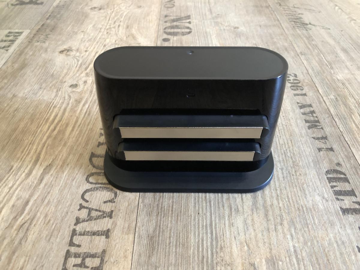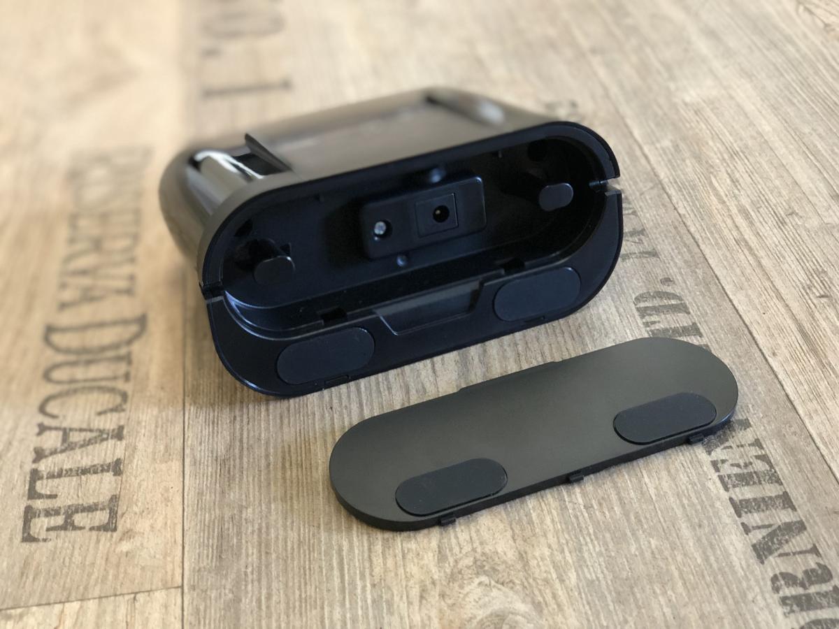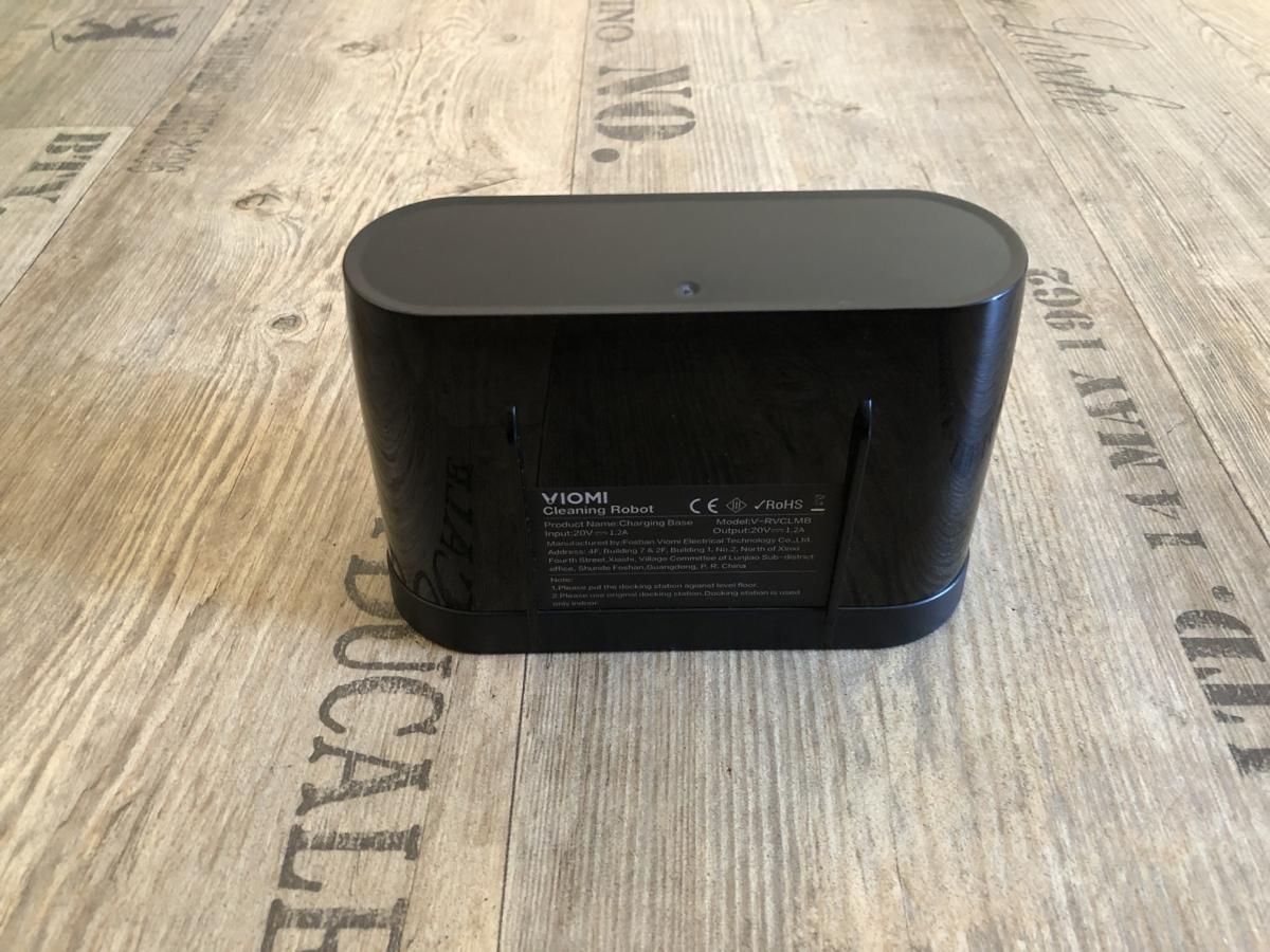 Die ebenfalls schwarze Ladestation fällt beim Viomi V2 sehr klein aus. Sie hat zwei Ladekontaktstreifen auf der Vorderseite, die den Stromzufuhr zum Roboter garantieren und verfügt über eine praktische Kabelaufwicklung auf der Unterseite. Das erspart zukünftigen Kabelsalat. Das Ladekabel verfügt über einen Eurostecker, der meiner Meinung nach leider etwas zu groß bemessen ist.