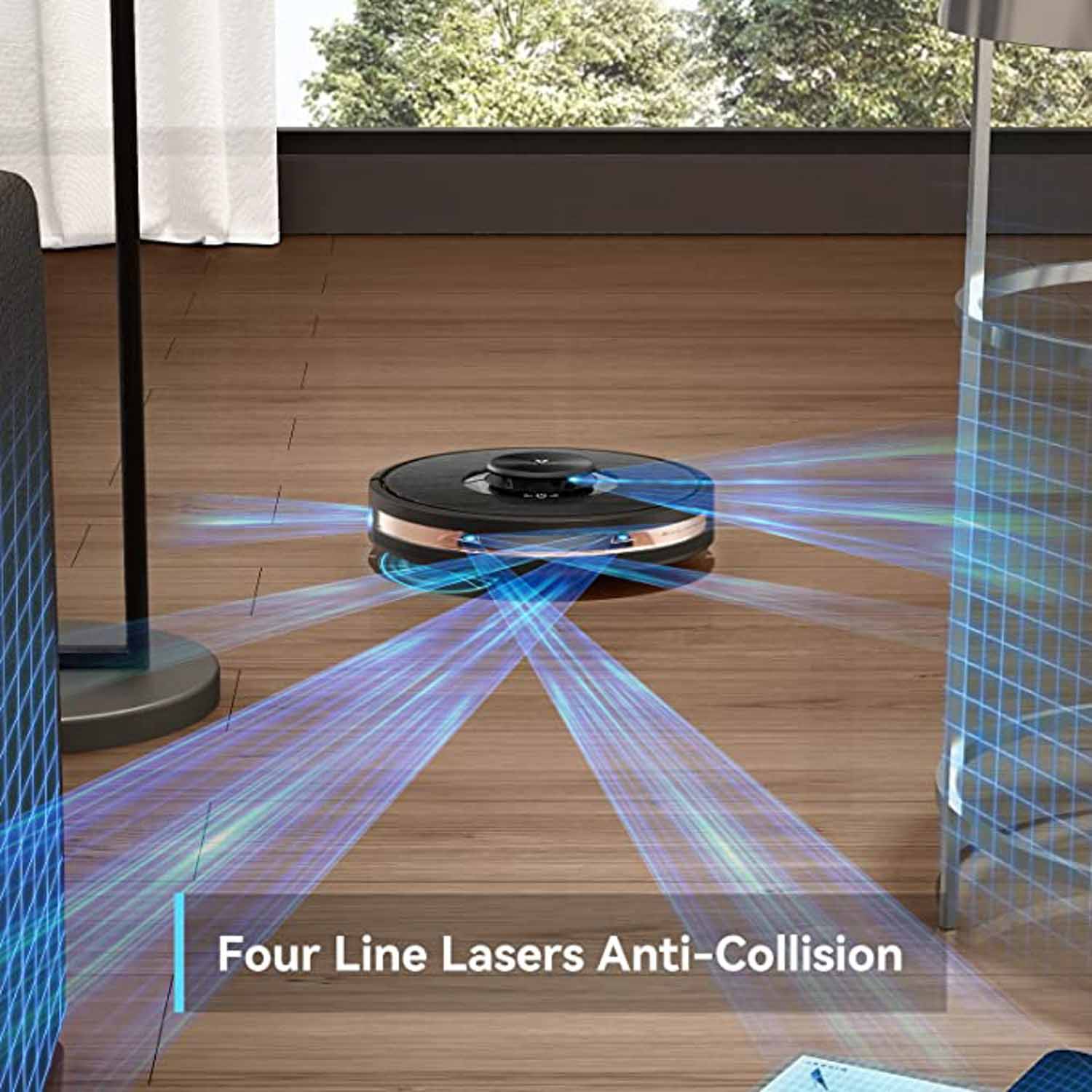 Na, kommt er dir bekannt vor? Ja, ganz klar erinnert er sehr stark an den Viomi Alpha 2 Pro. Ihm fehlt lediglich die Absaugstation. Tatsächlich gibt nahezu keine Unterschiede am Gerät selbst. Die Tochterfirma des Technikriesen Xiaomi wirbt stark mit der genialen Hinderniserkennung und Kollisionsvermeidung des Viomi V5 Pro. Ganze vier Lasersensoren sollen die komplette Umgebung deines Haushaltes stetig im Blick halten. Etwaige aufkommende Hindernisse sollen intelligent erkannt und präzise umfahren werden.