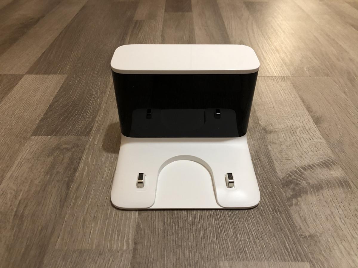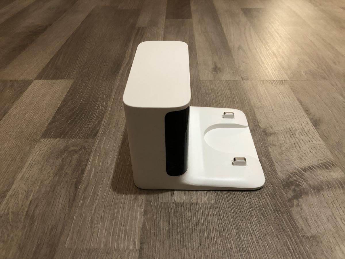 Die Ladestation kommt mir sehr bekannt vor. Sie ist dieselbe wie die des Roborock S50 oder des neuen Roborock S5 Max bzw. Roborock S6 Pure. Sie ist sehr klein gehalten, besitzt jedoch leider keine Kabelaufwicklung. Ebenso ist der Anschluss an diese nur von einer Seite aus möglich. Das mitgelieferte Netzkabel ist blöderweise mit einem chinesischen Stecker versehen und benötigt einen separat erhältlichen Adapter.