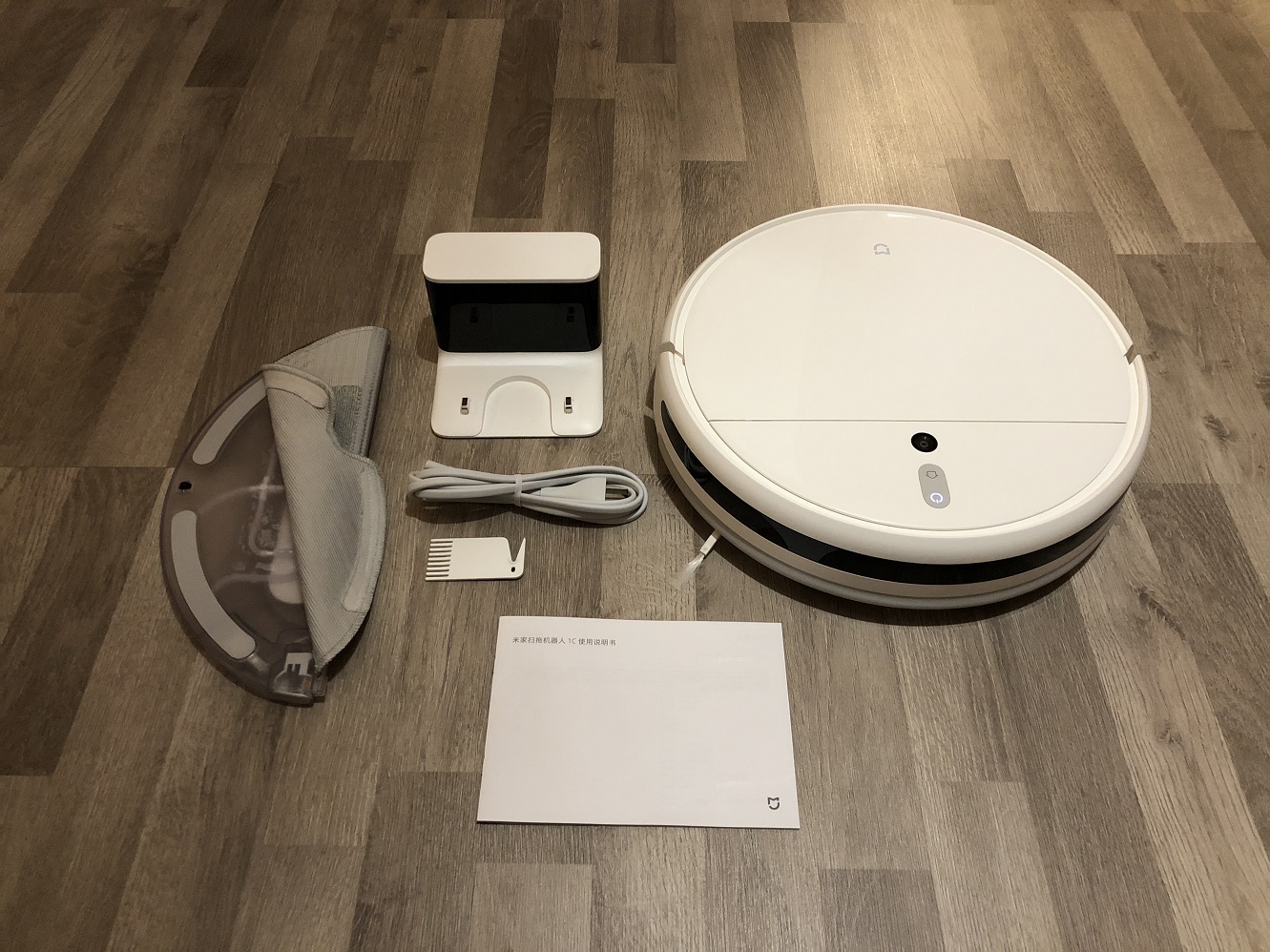 Der Lieferumfang der Xiaomi Geräte wird von Roboter zu Roboter gefühlt immer kleiner. Auch der Mijia 1C bekommt nur das Nötigste mitgeliefert. Leider sind dieses Mal keinerlei Ersatzteile beigelegt.