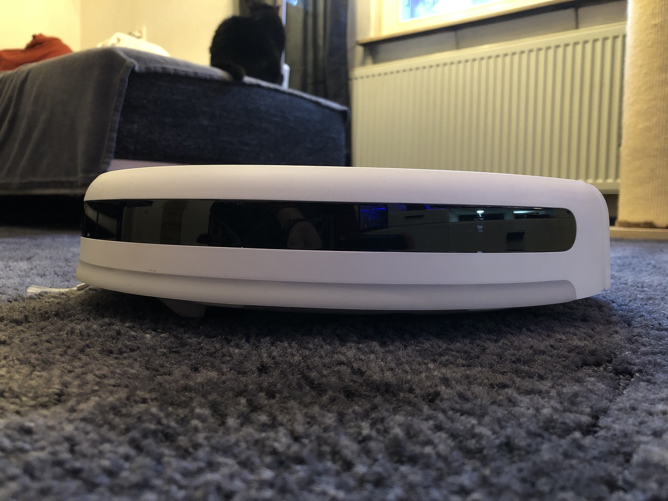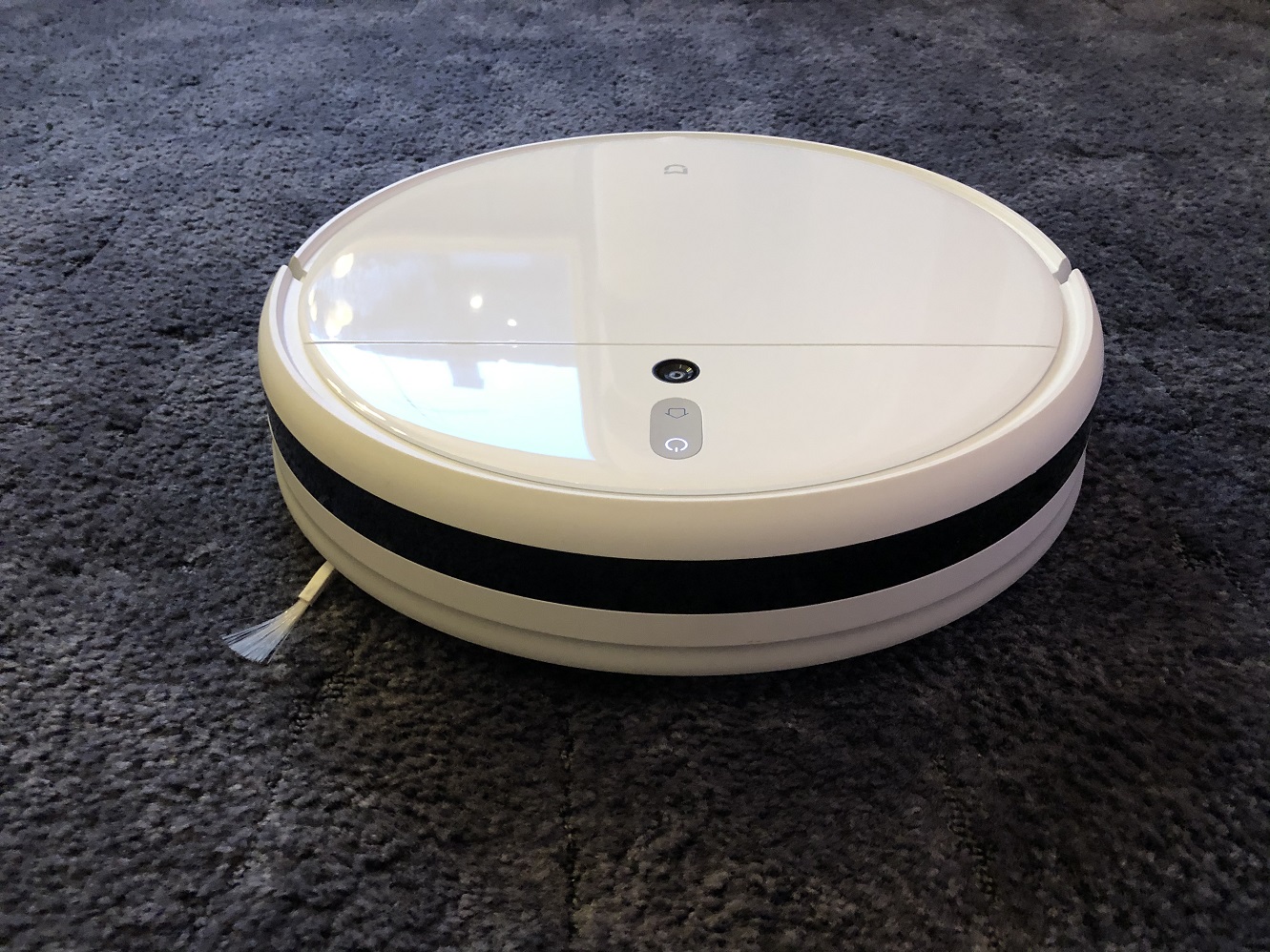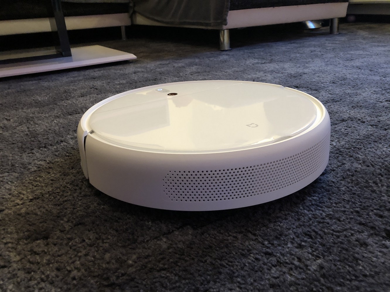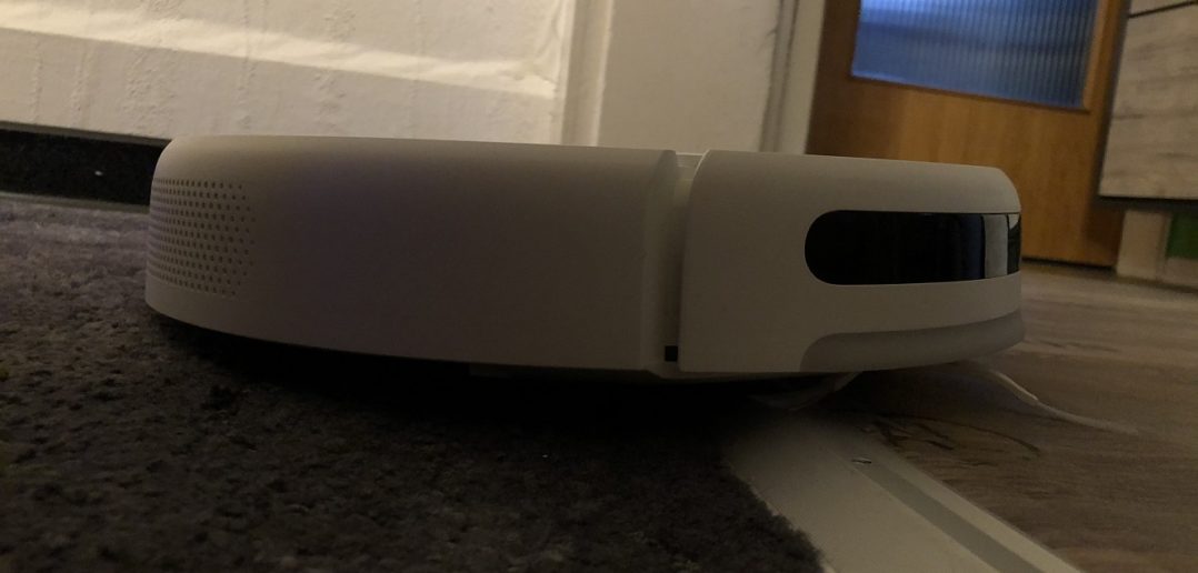 Der Mijia 1C hat glücklicherweise die Kamera mit an Bord, die zuverlässig und vor allem kontinuierlich Beihilfe schafft. Der Roboter orientiert sich, dank dieser, ständig an der Decke und korrigiert somit immer wieder seine Bahnen. Das bedeutet im Klartext, Teppichboden beeindruckt den Mijia 1C überhaupt nicht und er setzt anständig die Reinigung fort. Top!