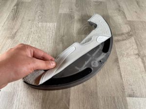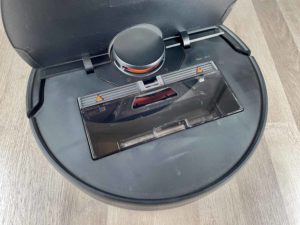 Xiaomi setzt beim Mi Mop 2 Ultra zwar auf eine aktiv gesteuerte Wischfunktion, jedoch mit einem ziemlich klein bemessenen Wassertank. Dieser wird am Heck unter den Roboter geschoben bis er einrastet. Das Einrasten gelingt nicht auf Anhieb reibungslos und hackelt hier und da ein wenig. Während der Reinigung zieht er dann ein feuchtes Wischtuch hinter sich her. Diese Art der Wischfunktion ist auf keinen Fall ein Ersatz für das Wischen von Hand. Sie dient lediglich für das Entfernen von Fußspuren und um den Boden am Glänzen zu halten. Wer mehr erwartet von einem Haushaltsroboter, der sollte sich nach einem Modell mit vibrierender, rotierender oder oszillierender Wischfunktion umschauen. Das Wischbild hingegen ist immer schnell vollständig uns sauber da, obwohl das Wischtuch trocken war. Ebenso fährt er auf die Absaugstation so hinauf, dass das Tuch nicht mehr den Boden berührt. Eine Bodenplatte für die Ladestation gibt es nicht.