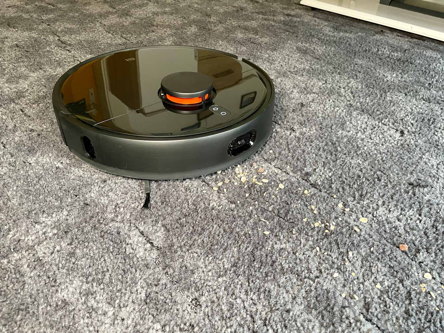 Xiaomi gibt an, dass der Xiaomi Mi Mop 2 Ultra ganze 4000 Pascal im stärksten Modus erreicht. Das ist der aktuelle Durchschnitt aller Saug-Wischroboter und kann sich sehen lassen. Auch im Test hat der Xiaomi im Thema Staubsaugen nichts anbrennen lassen. Die Saugleistung hat sich als ausgezeichnet herausgestellt und ist in den vier verschiedenen Saugstufen für jede Bodenart geeignet. Mit dem täglichen Haushaltsschmutz kommt der Roboter sowohl auf jedem Hartboden als auch auf Teppichboden hervorragend zurecht. Auch anfallende größere Verschmutzungen schafft er meist mit einem Durchgang komplett zu entfernen. Bedauerlicherweise gibt es keine Option einzuschalten, die den Roboter einen Bereich zweimal befahren lässt. Auch eine Teppicherkennung findet man beim Xiaomi Mi Mop 2 Ultra nicht. Dadurch, dass er eine Seitenbürste besitzt, schießt er immer wieder ein paar Körnchen über die Hauptbürste hinaus. Das kommt jedoch recht selten vor. Alles in allem zeigt der Xiaomi Mi Mop 2 Ultra im Test eine einwandfreie Saugleistung.