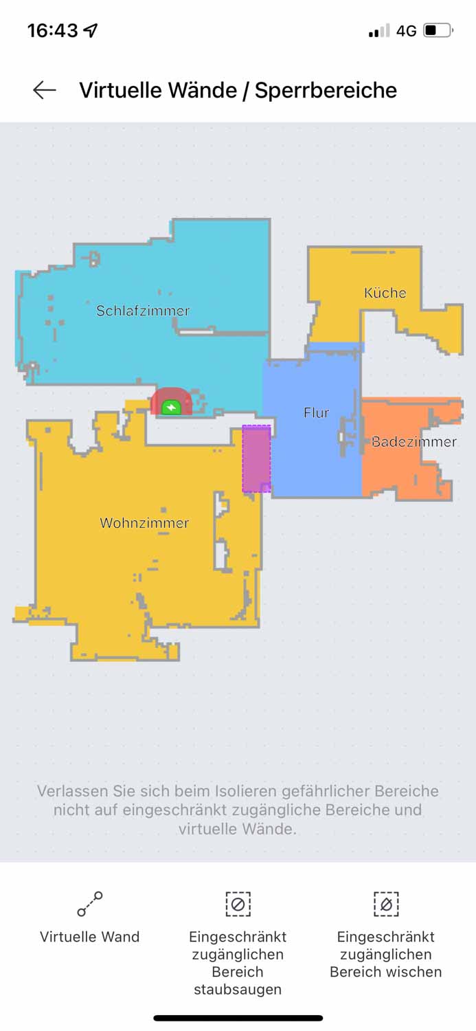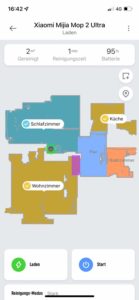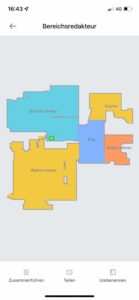 | Raumeinteilung | Der Roboter teilt selbst die Räume auf der Karte ein. Diese können manuell angepasst werden. |